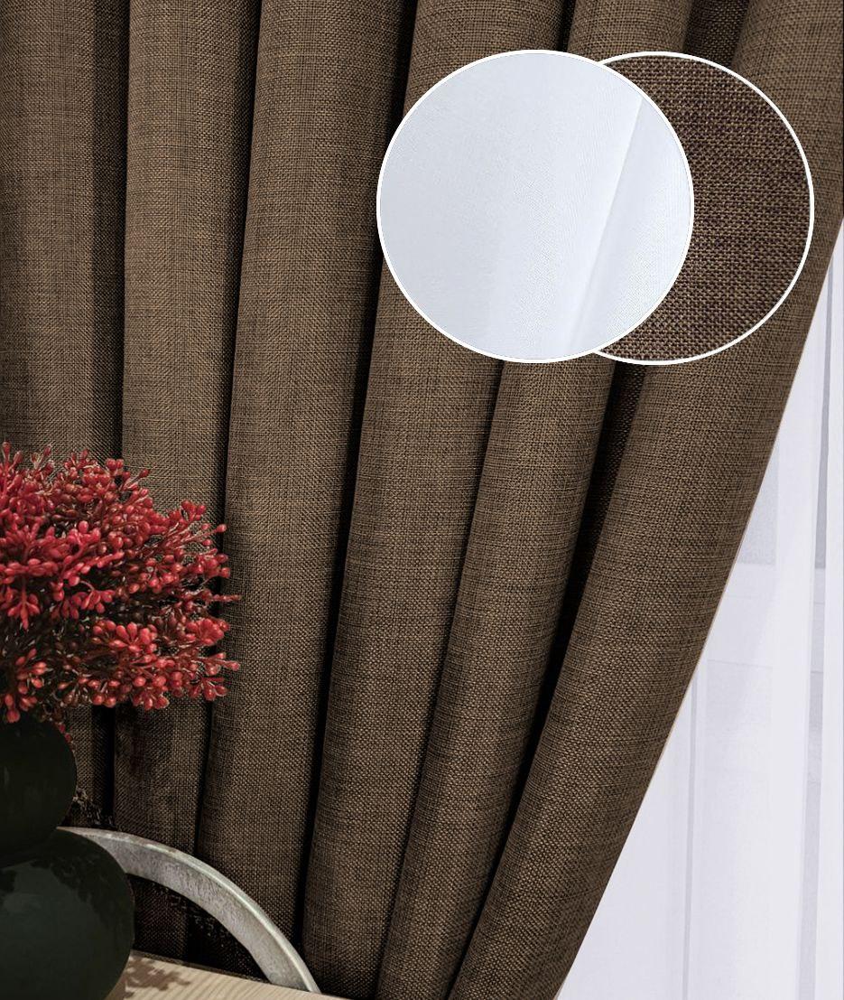 Комплект штори однотонні і тюль. Тканина льон мішковина + шифон. Колір: коричневі штори, білий тюль