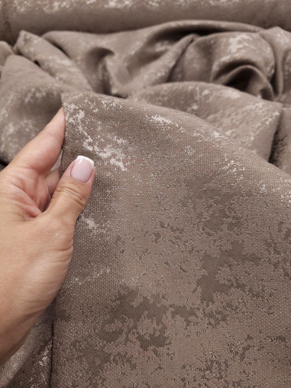 Комплект штори шеніл мармур. Колір капучино. Готові штори в спальню, зал, вітальню