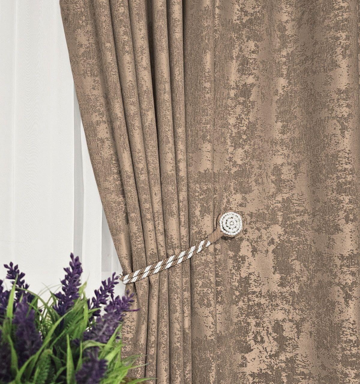 Комплект штори жаккард мармур. Колір: темний бежевий. Готові штори в спальню, зал, вітальню