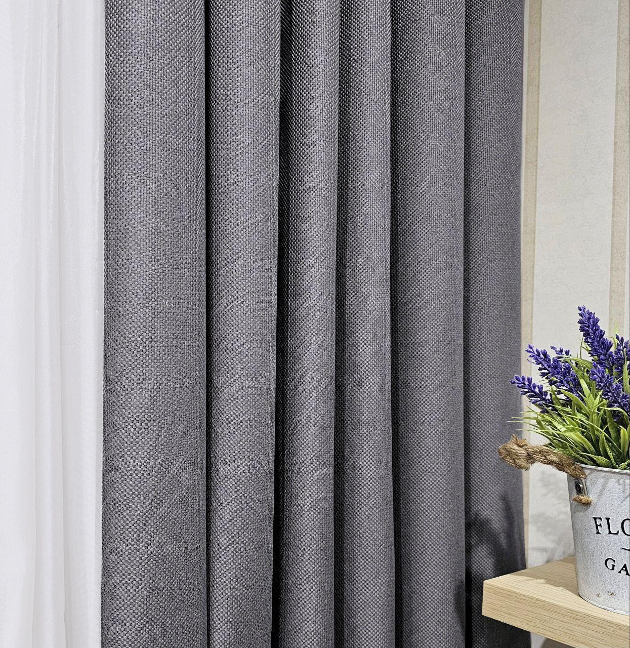 Комплект сірі штори блекаут льон рогожка. Готові штори сірого кольору в спальню, зал