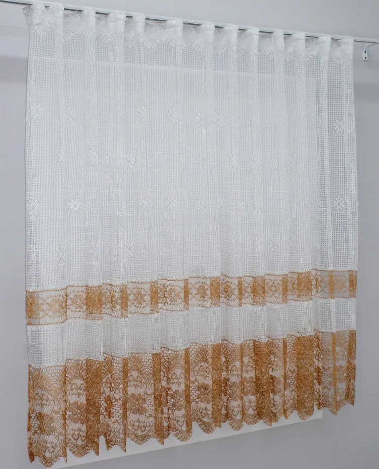 Або замовити пошиття готового тюля. До послуги входить: пошиття тасьми з петельками під гачки (тасьма на карниз трубу або люверси), обробка всіх країв після відрізу від рулону, пошиття на індивідуальну висоту.