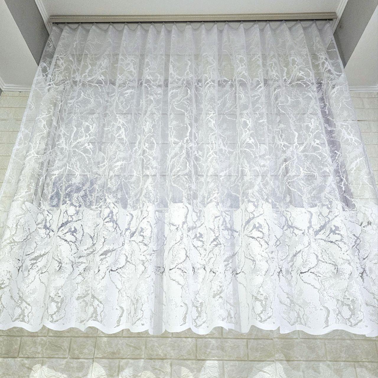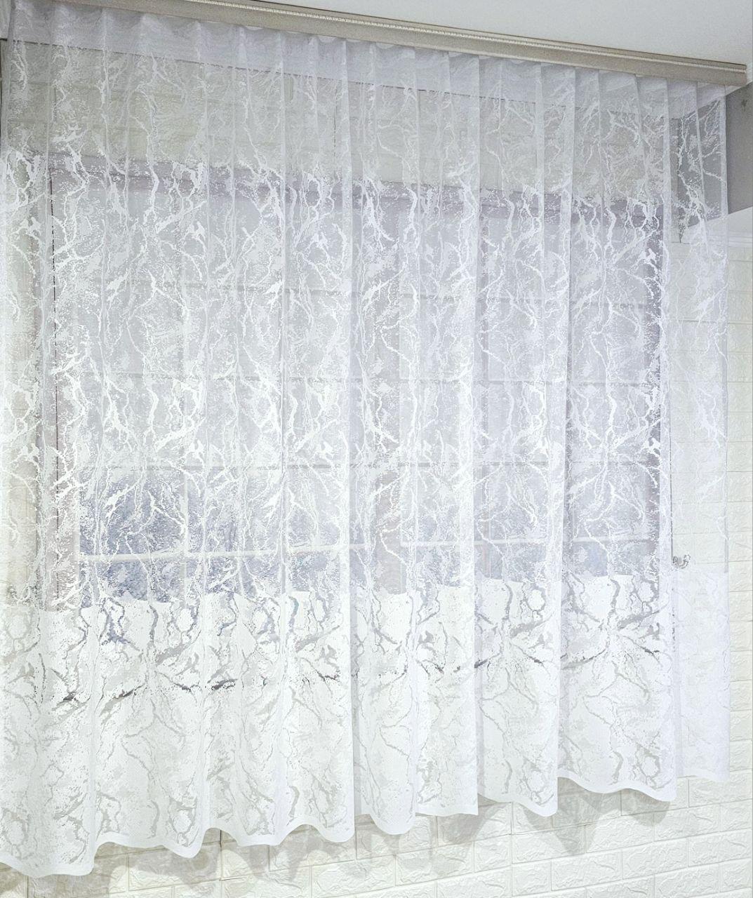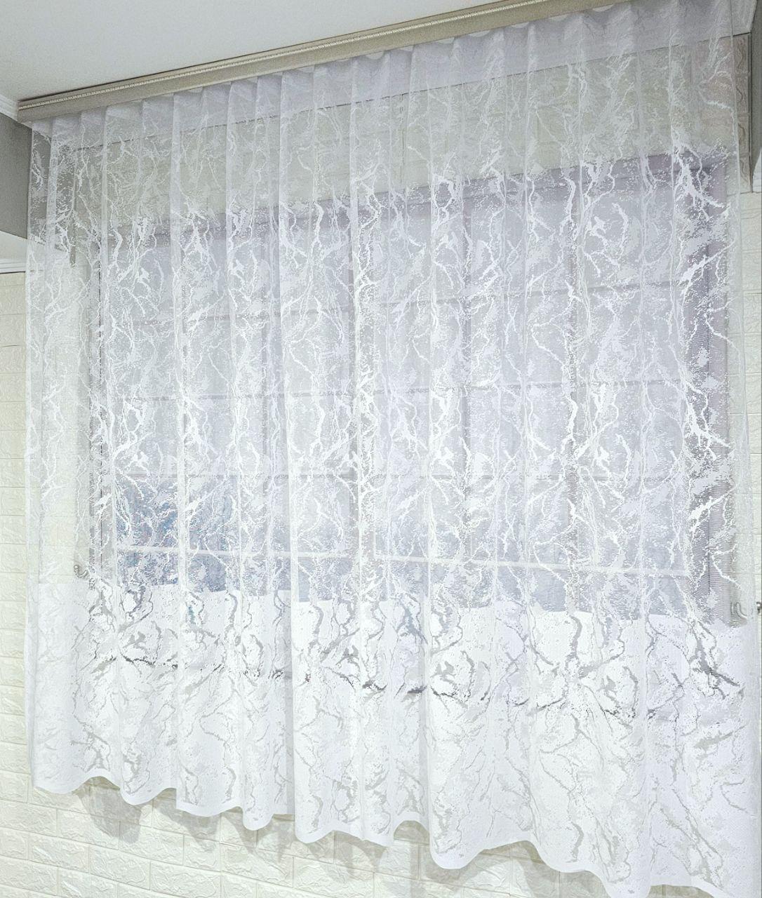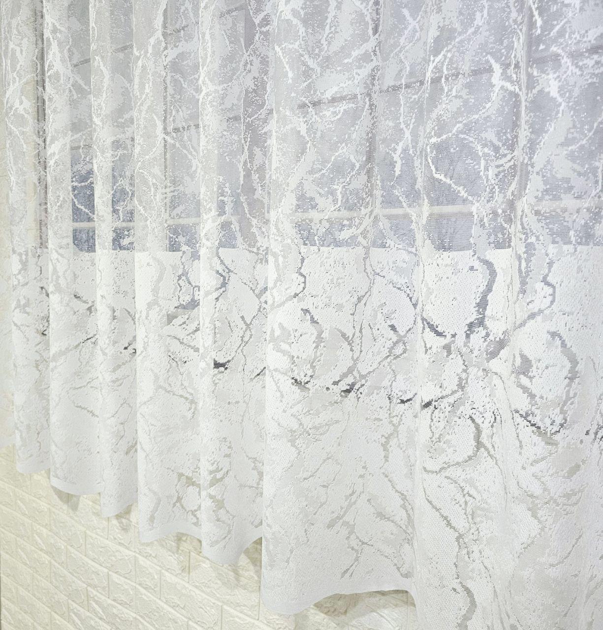 Короткий тюль мармур жаккард. Колір білий. Тюль на кухню, балкон, веранду, дачу. Висота 1,6м