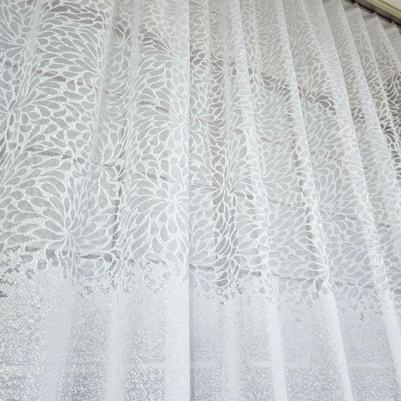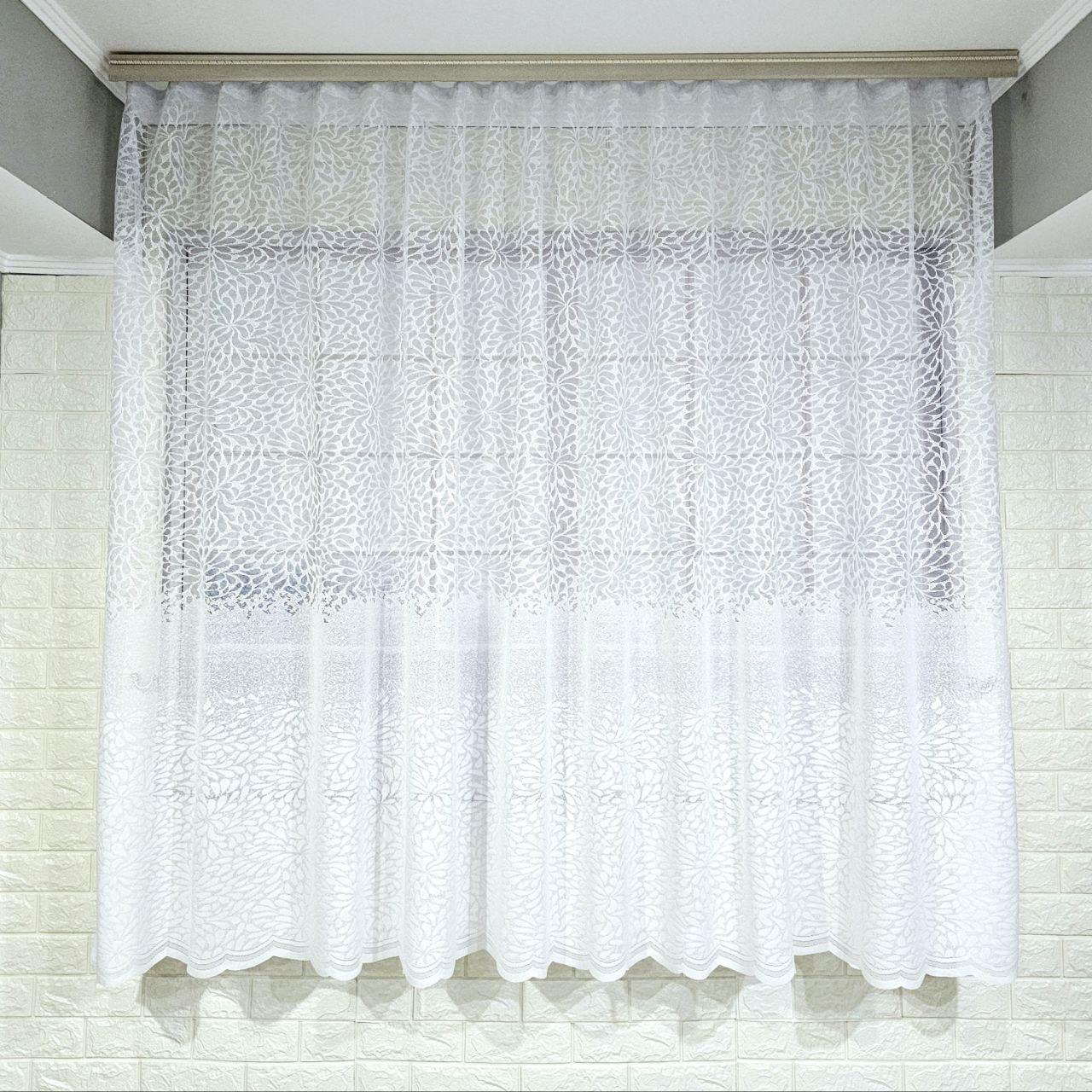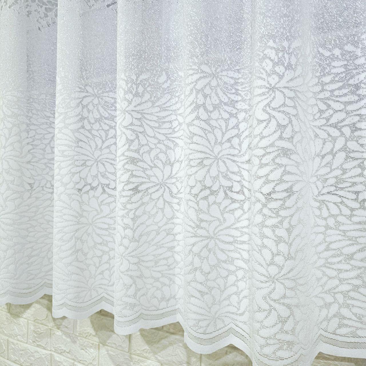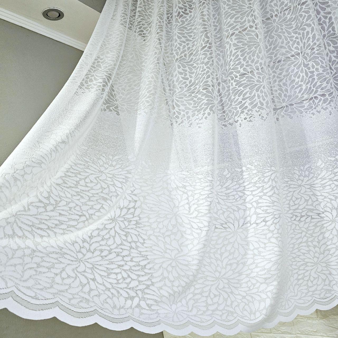 Короткий тюль жаккард. Колір білий. Тюль на кухню, балкон, веранду, дачу. Висота 1,6м