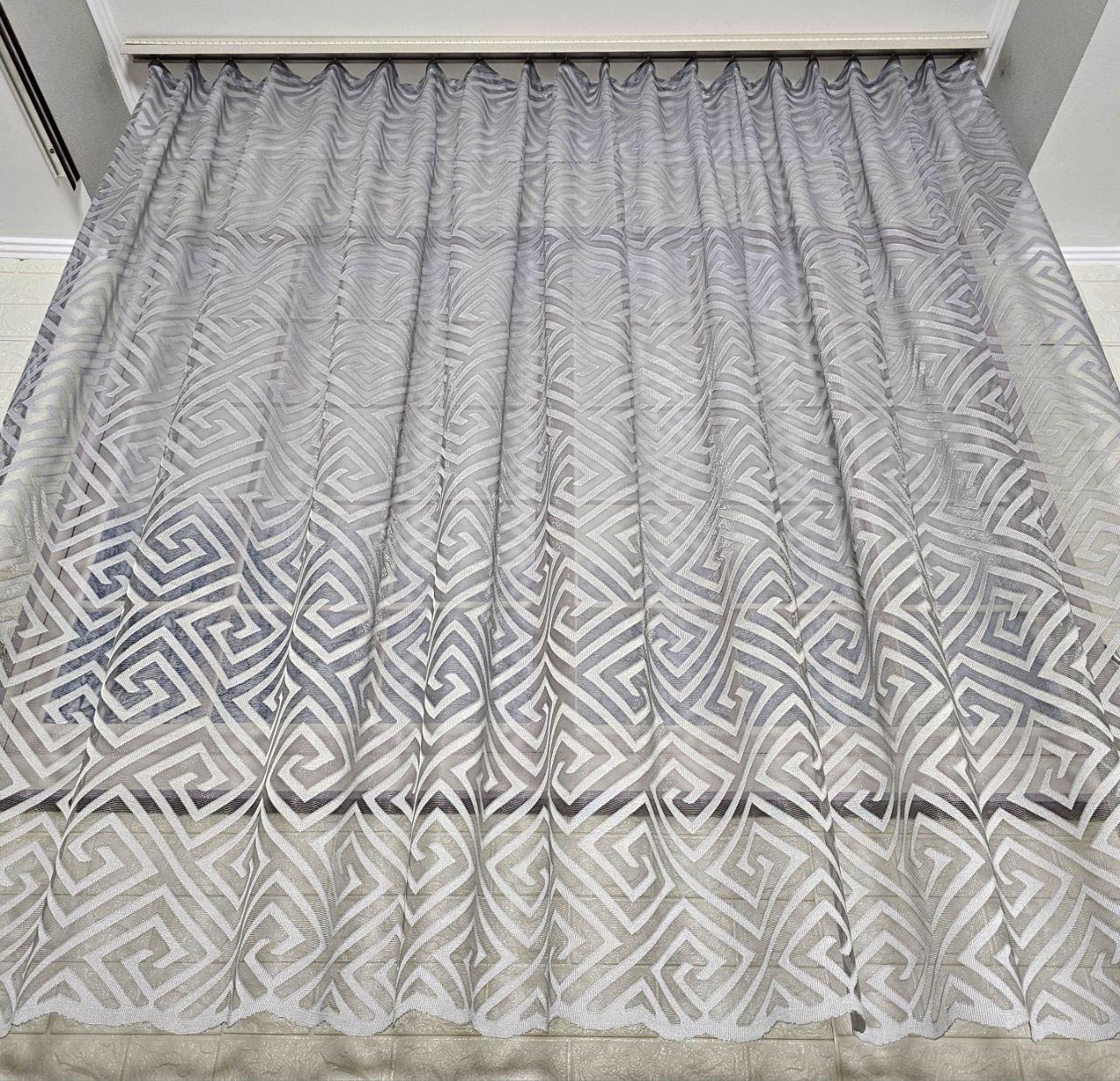 Або замовити пошиття готового тюля. До послуги входить: пошиття тасьми з петельками під гачки (тасьма на карниз трубу або люверси), обробка всіх країв після відрізу від рулону, пошиття на індивідуальну висоту.