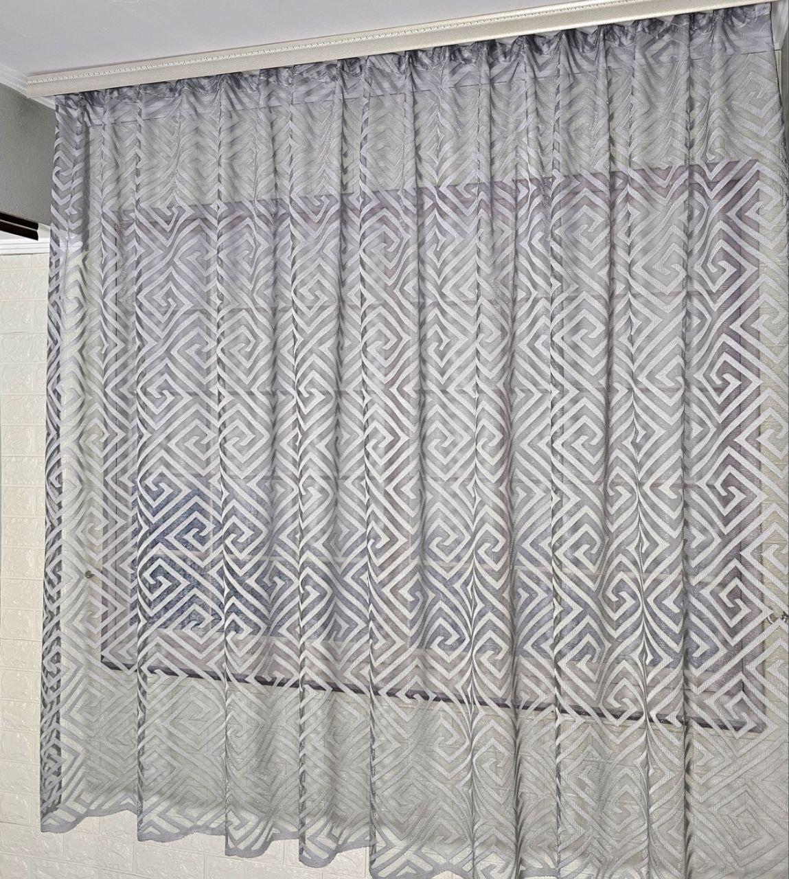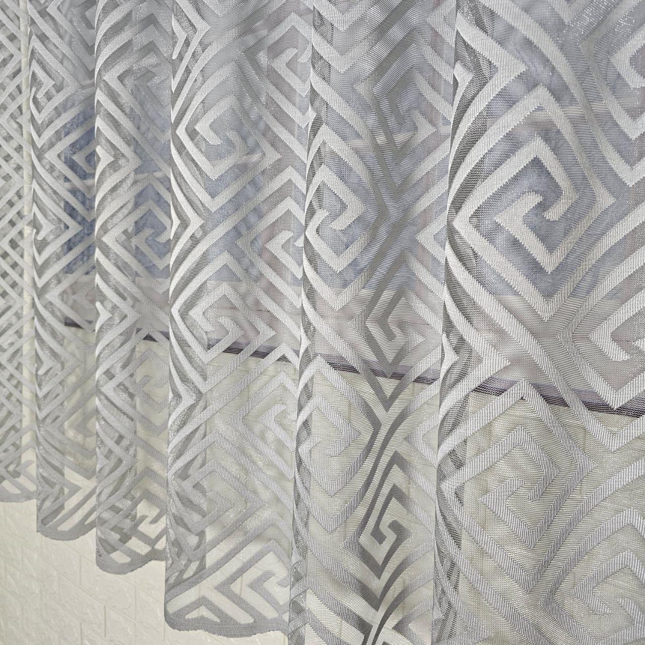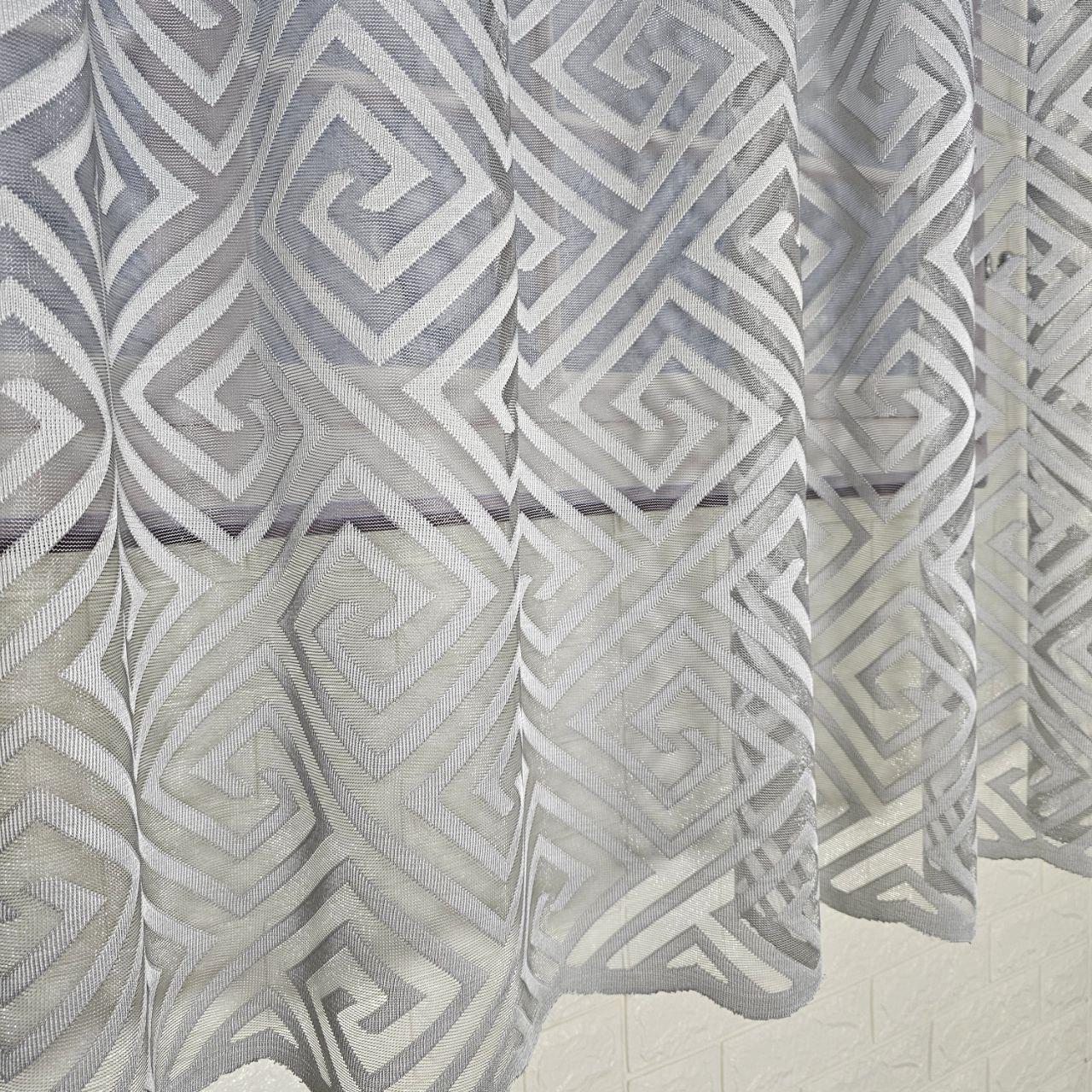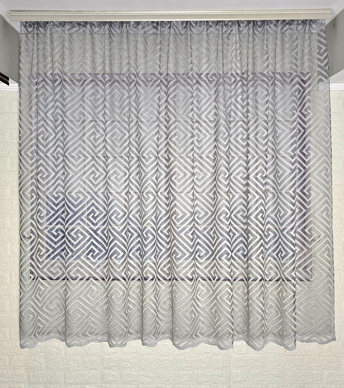 Короткий тюль жаккард. Колір сірий. Тюль на кухню, балкон, веранду, дачу. Висота 1,6м