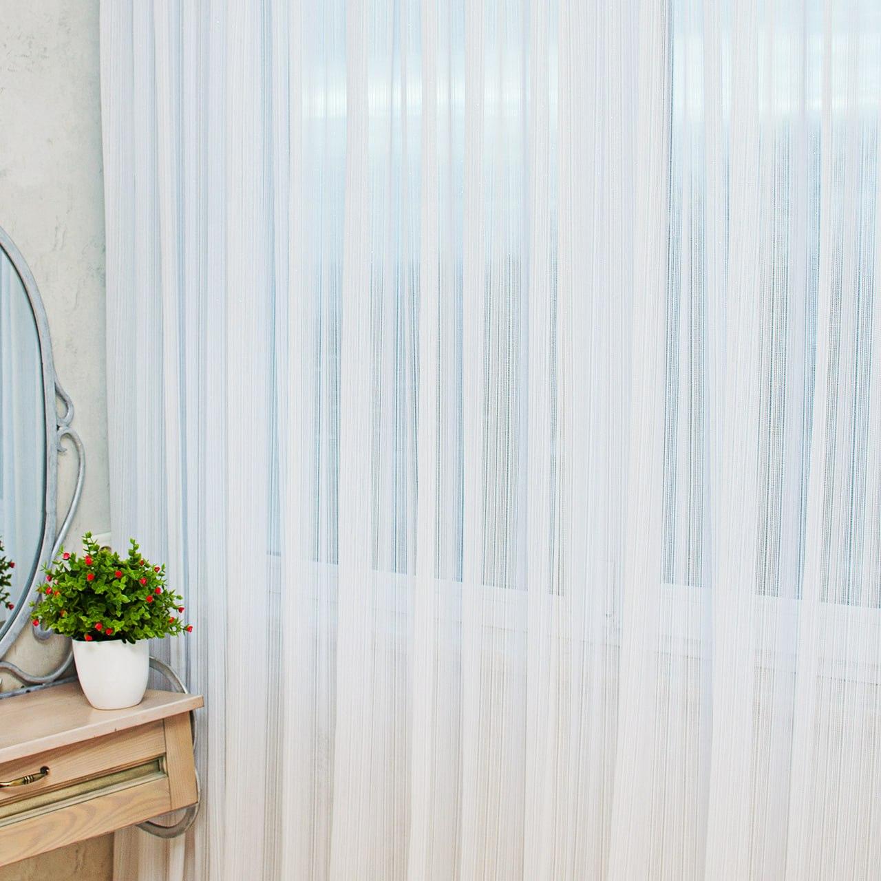 Або замовити пошиття готового тюля. До послуги входить: пошиття тасьми з петельками під гачки (тасьма на карниз трубу або люверси), обробка всіх країв після відрізу від рулону, пошиття на індивідуальну висоту.