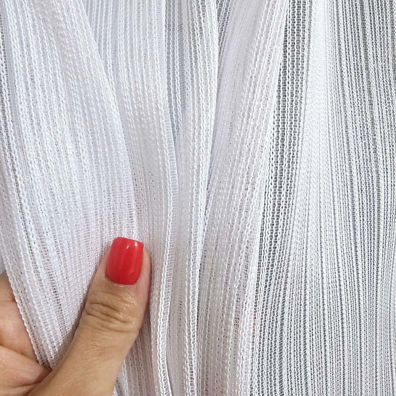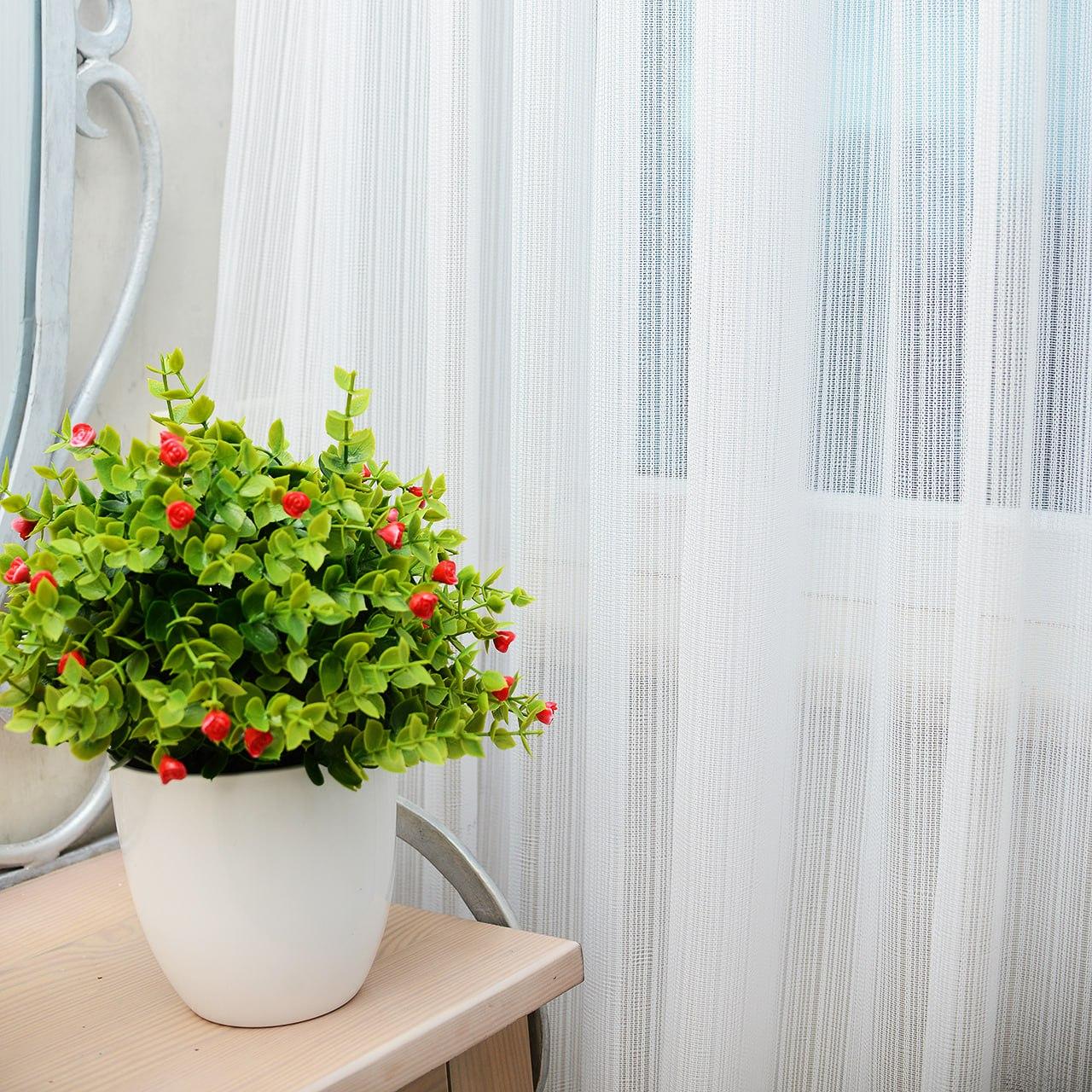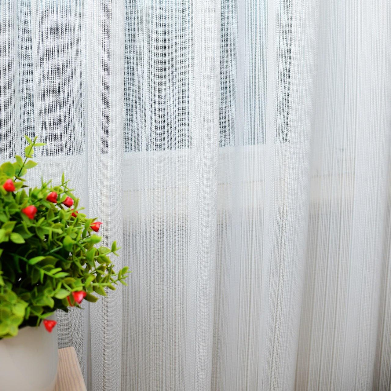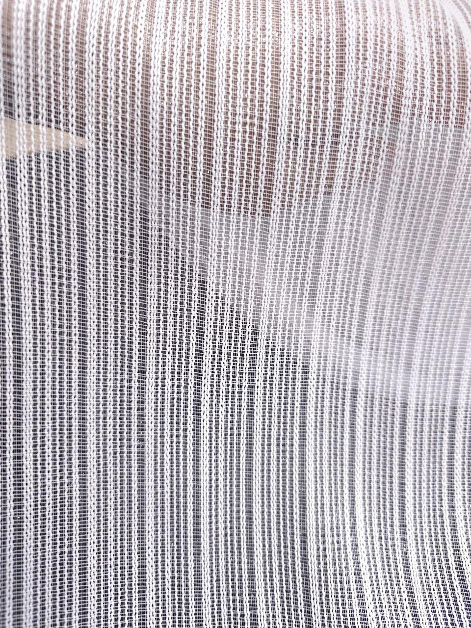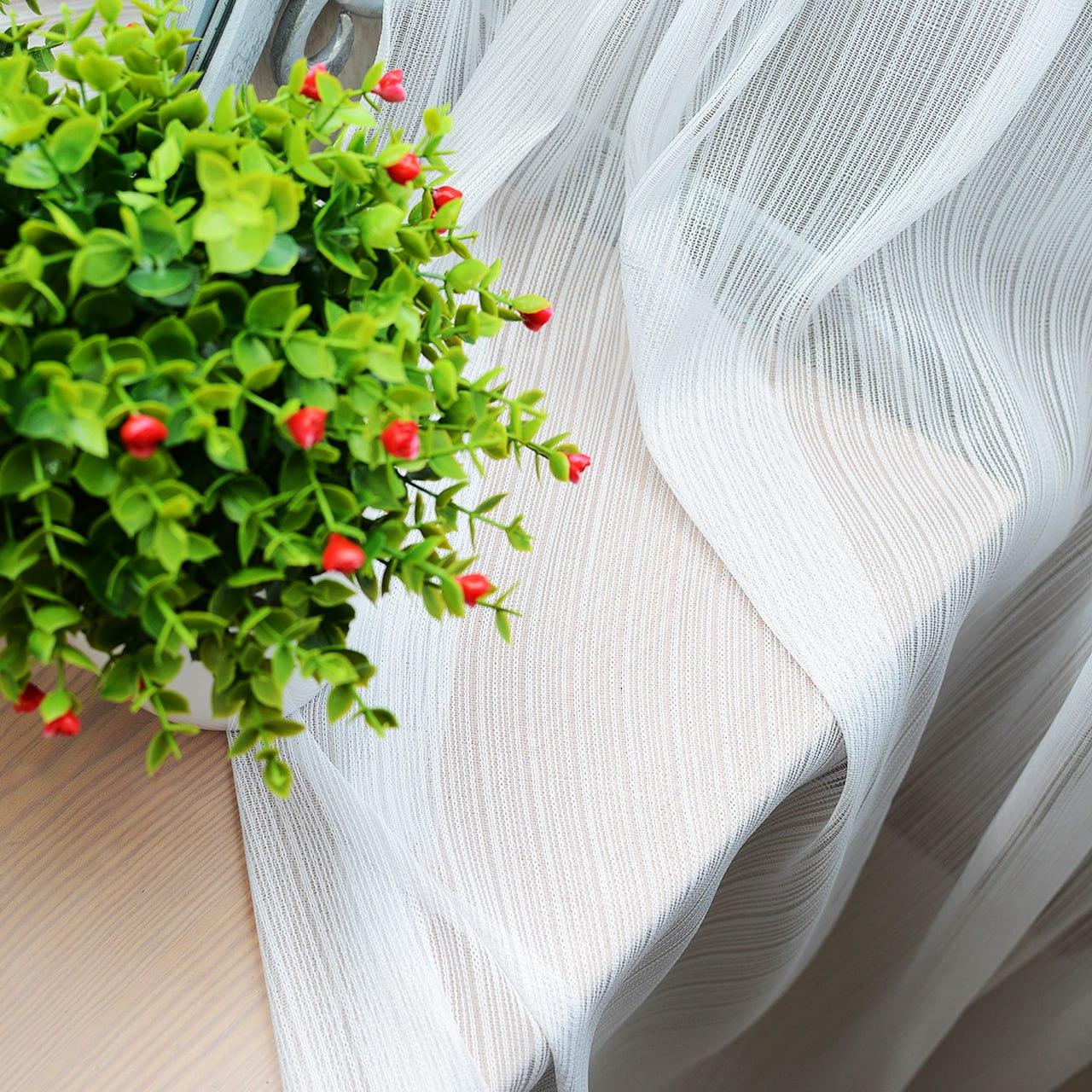 Щільний тюль льон з плетеними вертикальними смугами. Колір білий