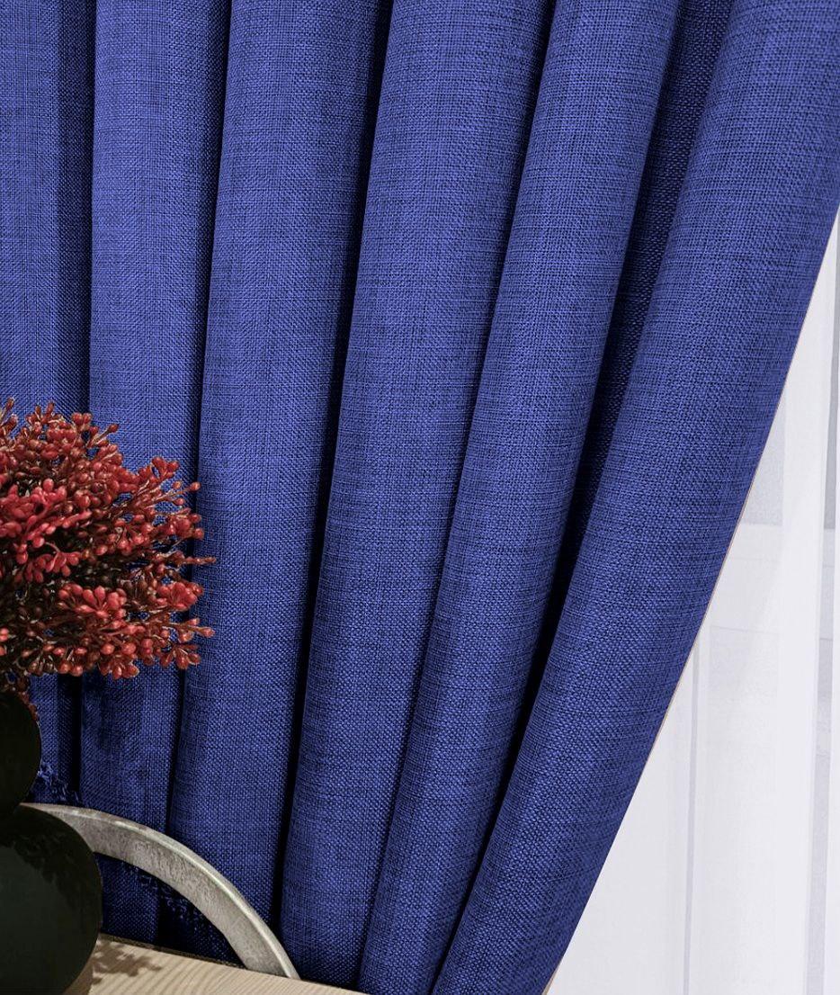 Тканина для штор льон мішковина. Шторна тканина колір синій