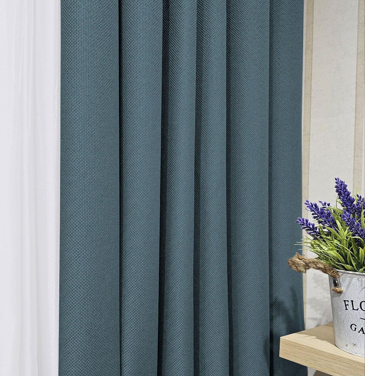 Тканина для штор льон рогожка блекаут. Шторна тканина колір сіро-бірюзовий