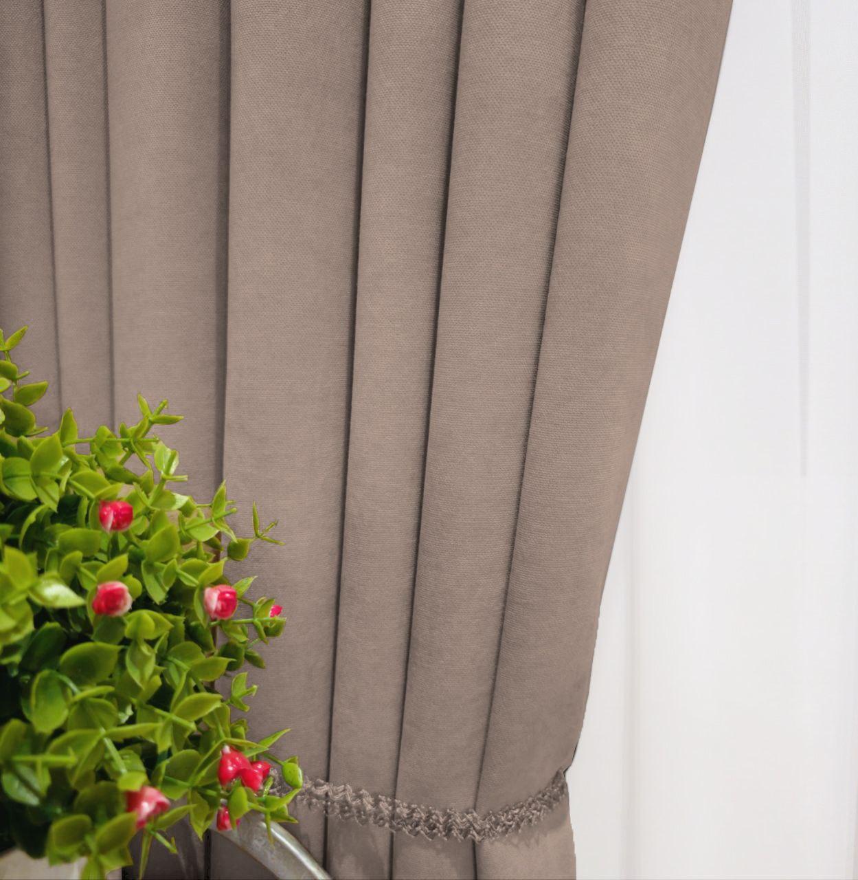 Тканина для штор мікровелюр Diamond. Шторна тканина колір темний бежевий