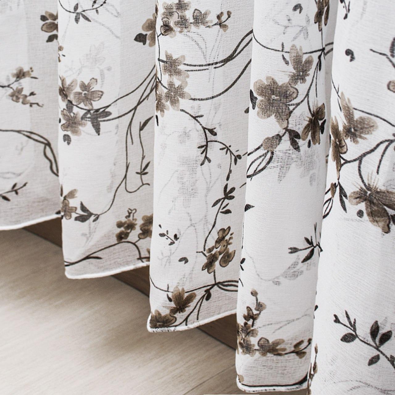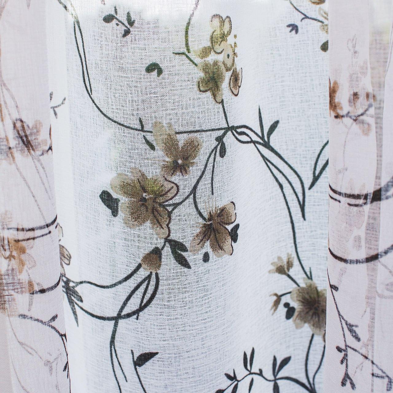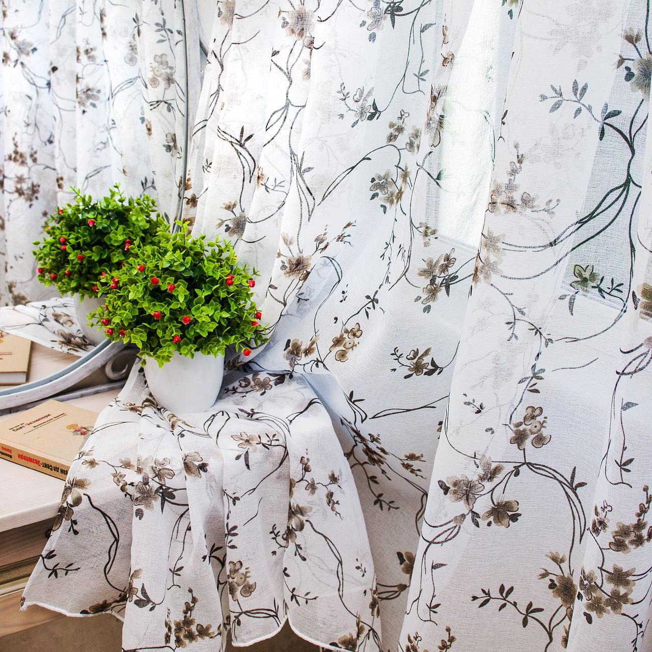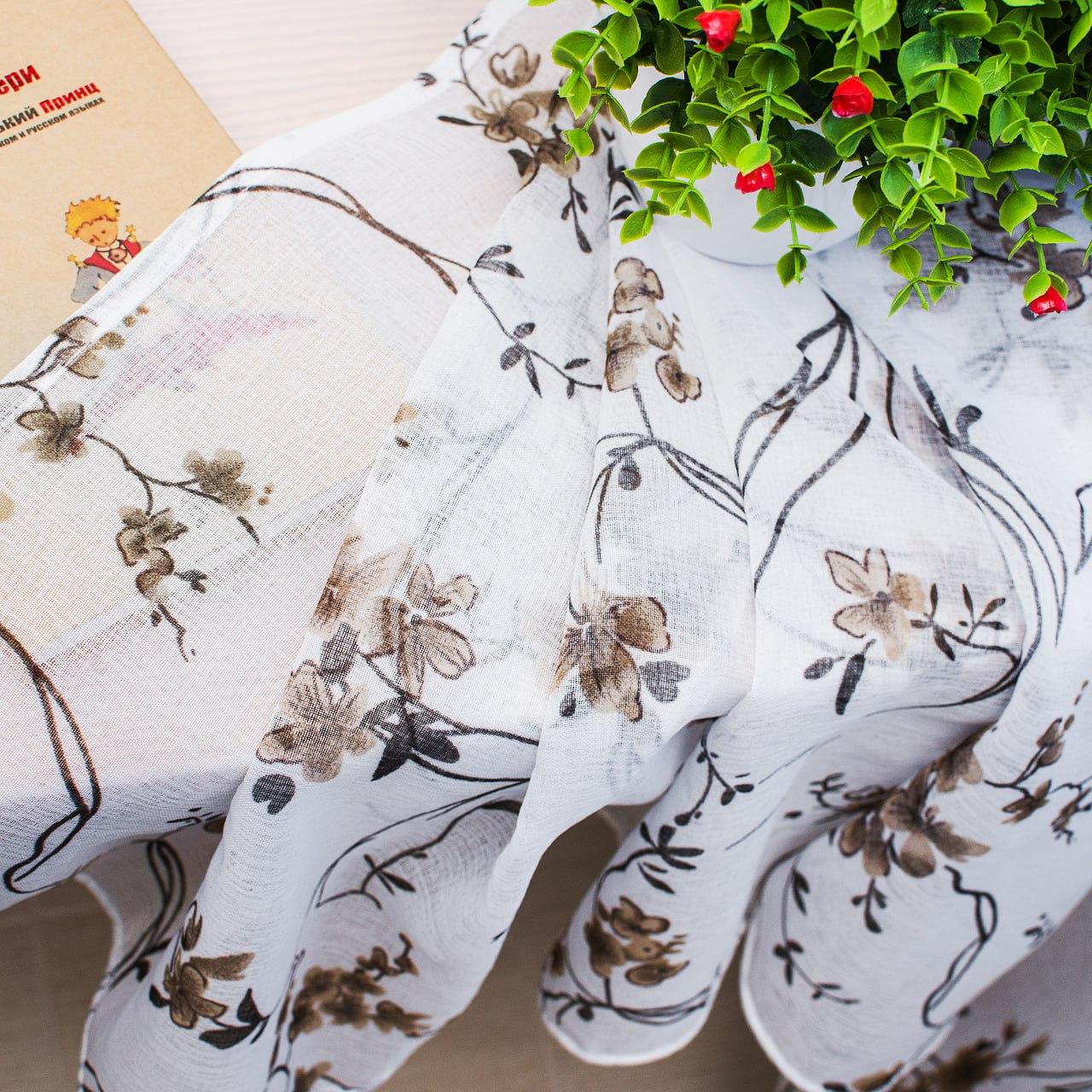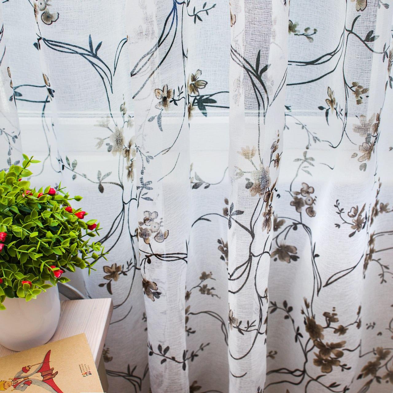 Тюль льон Прованс. Колір білий з коричнево-чорним