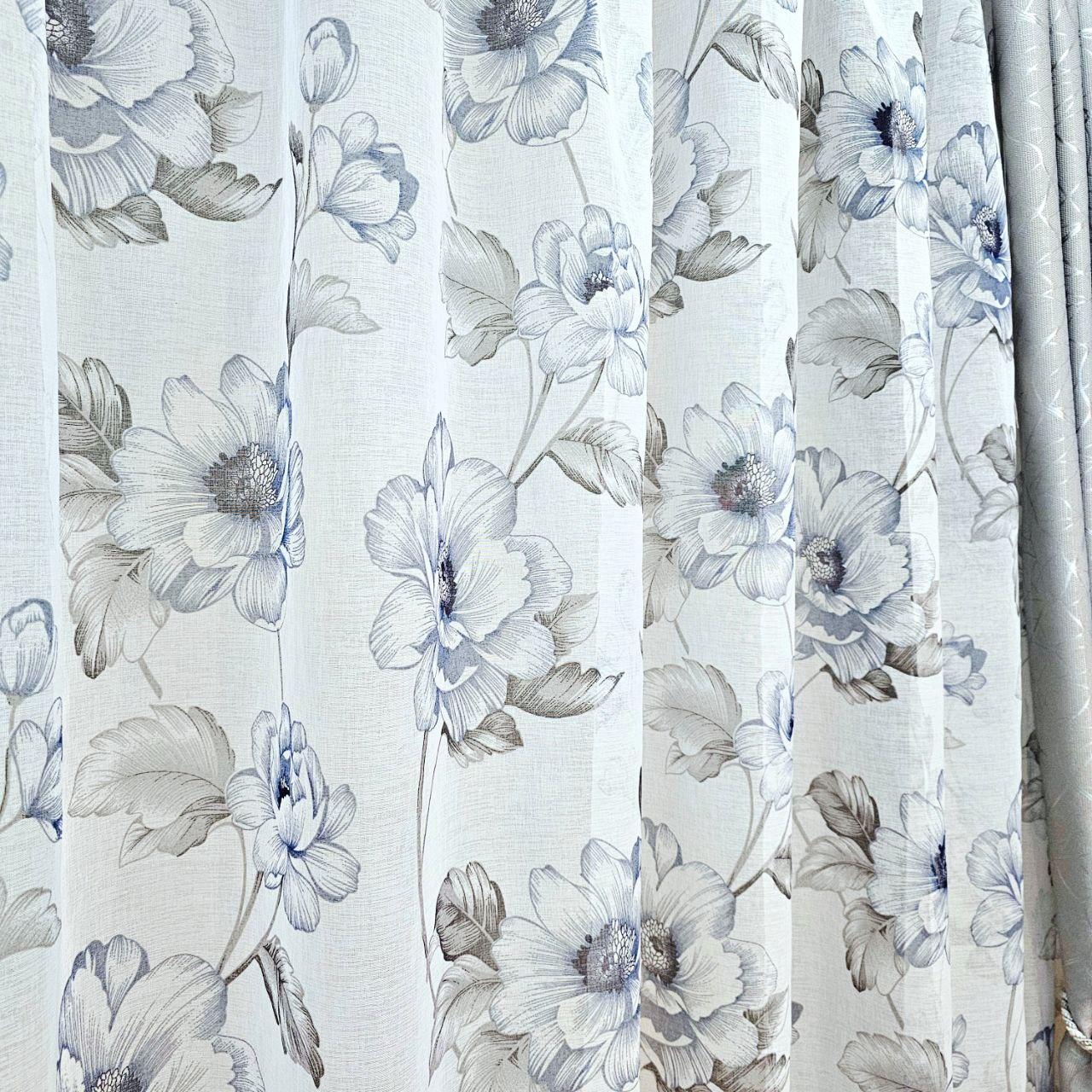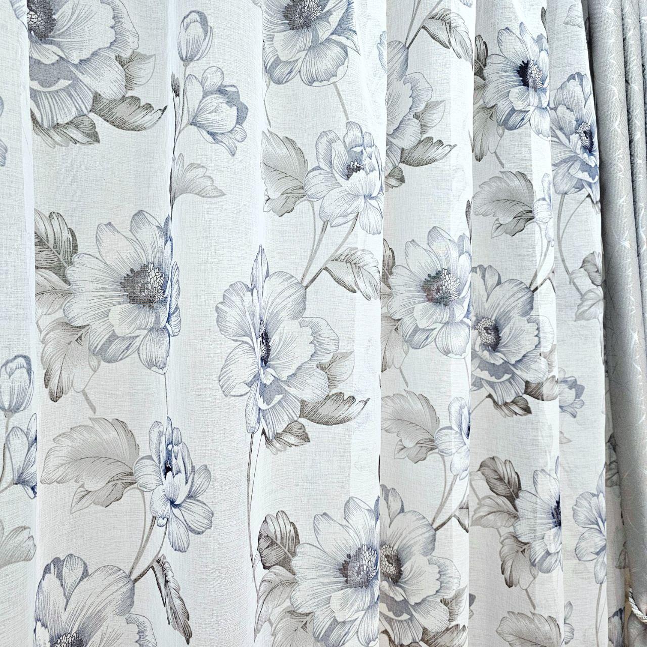 Тюль льон Прованс. Колір білий з сірим та блакитним