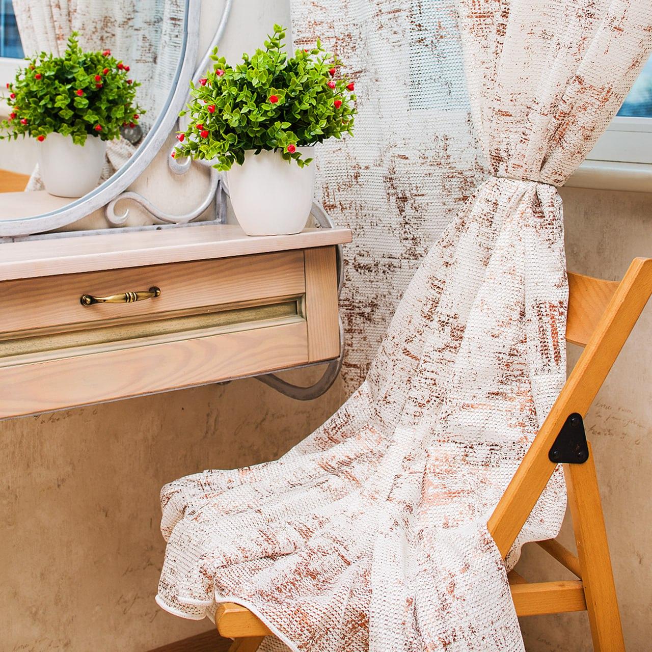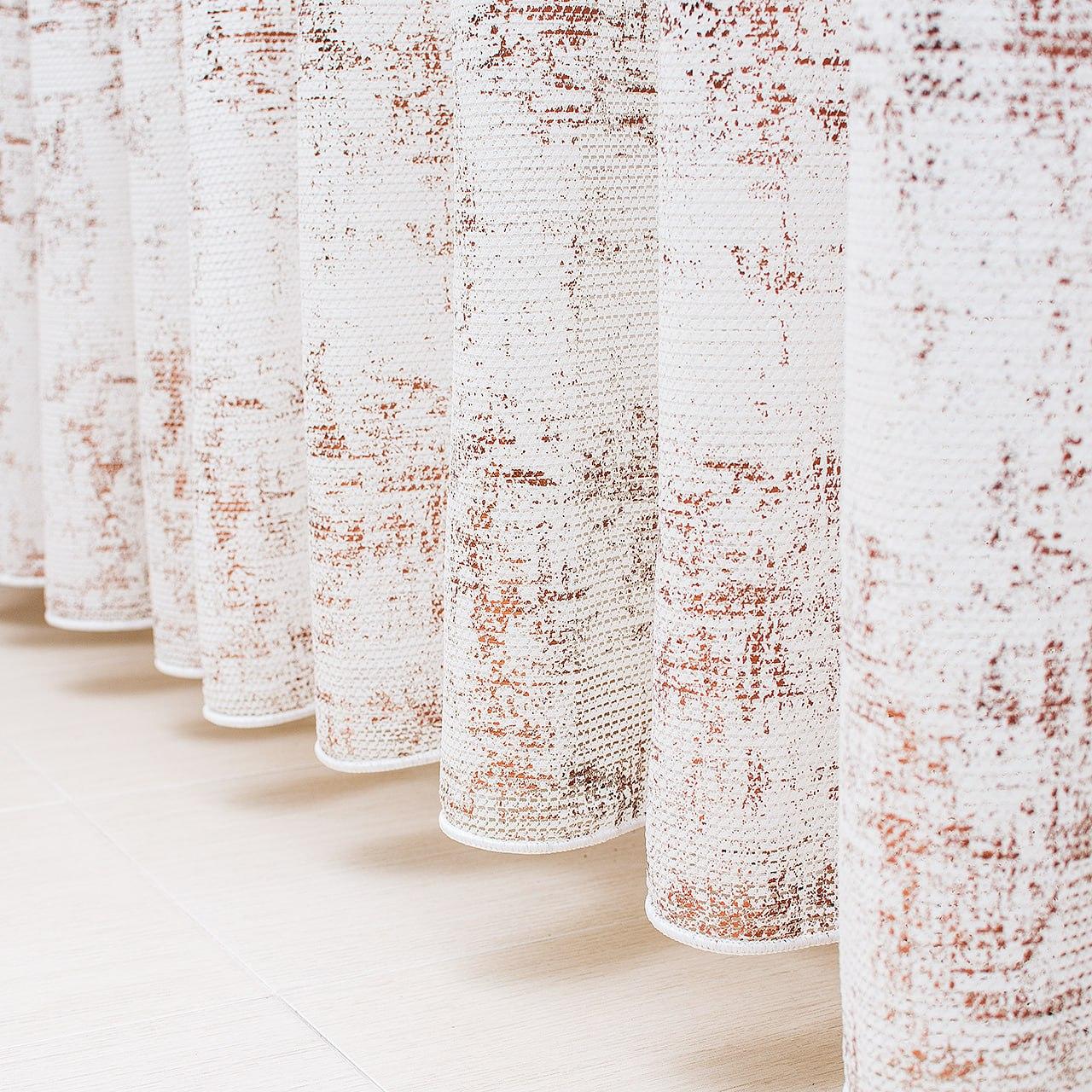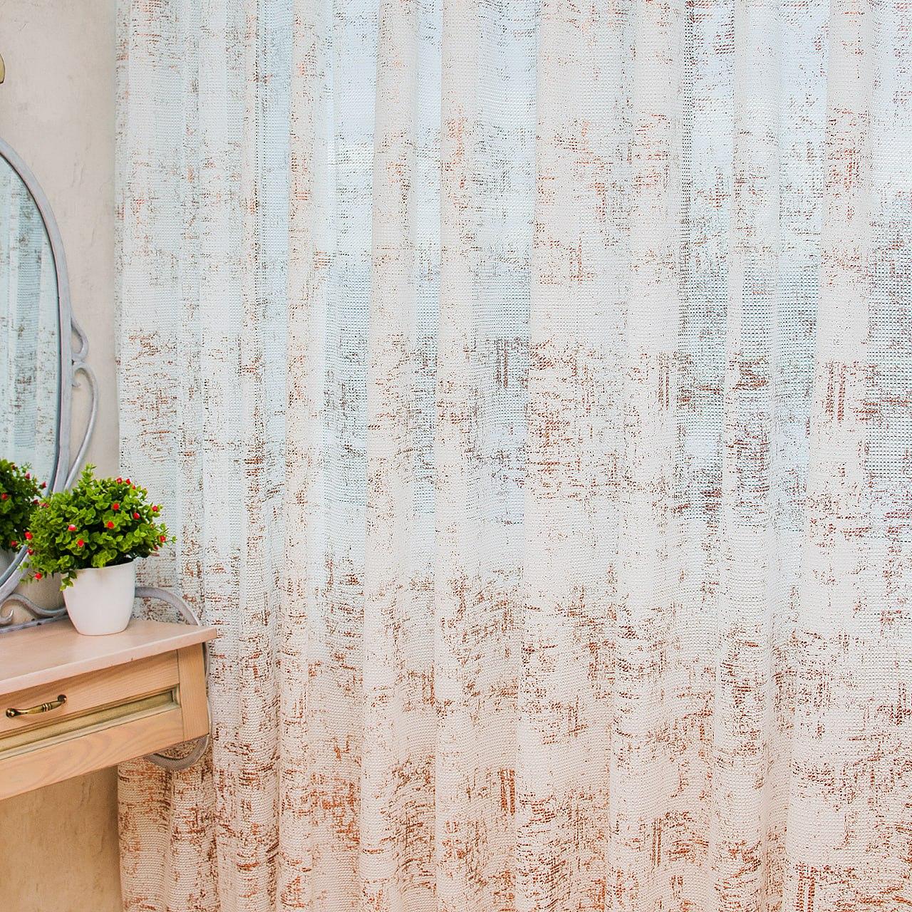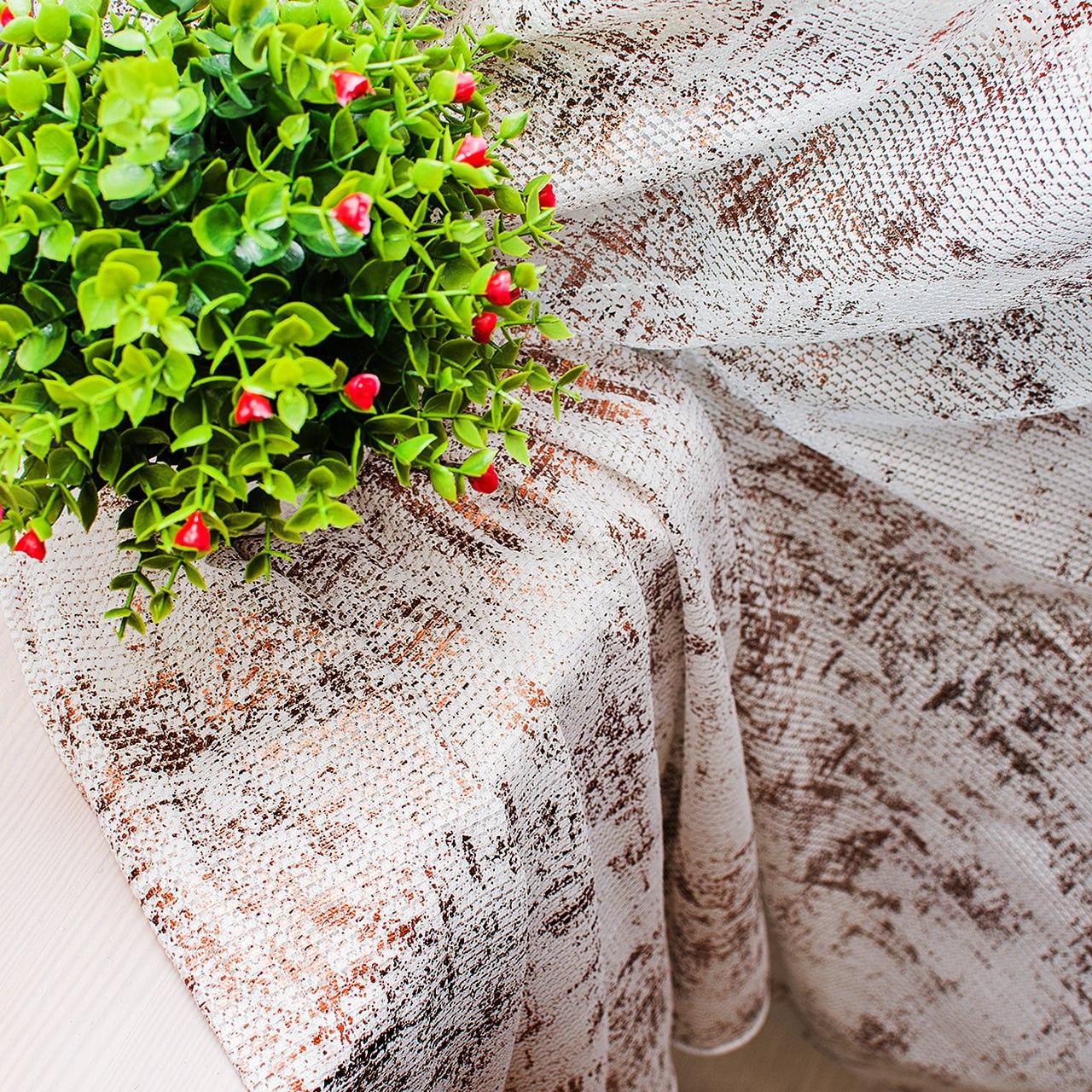 Тюль льон з фактурою мармур. Колір білий з бежевим