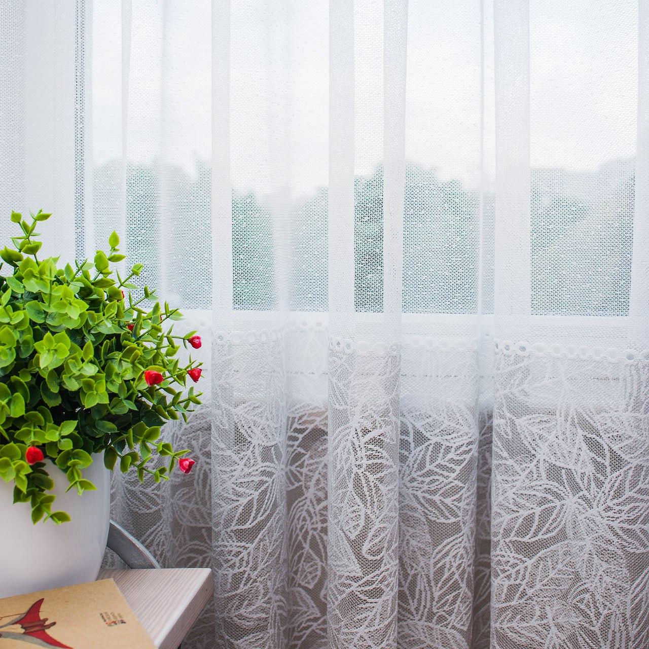 Тюль жаккард, колекція Aylin. Колір білий з бежевим