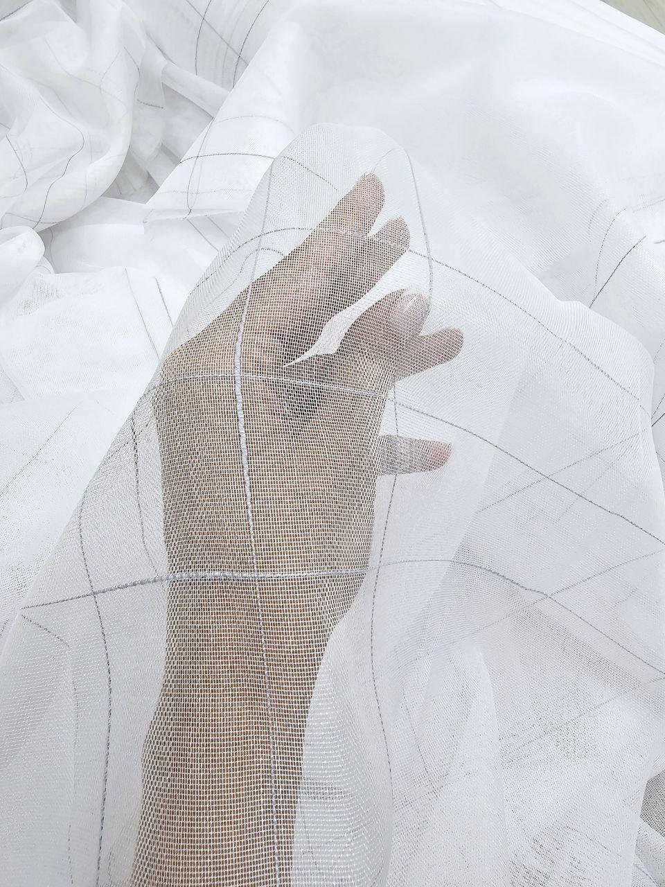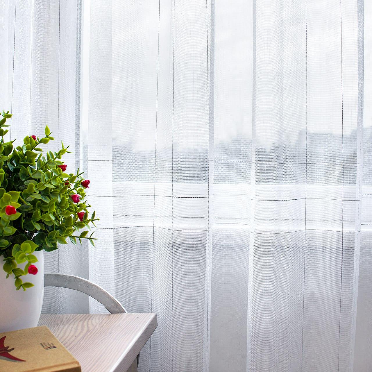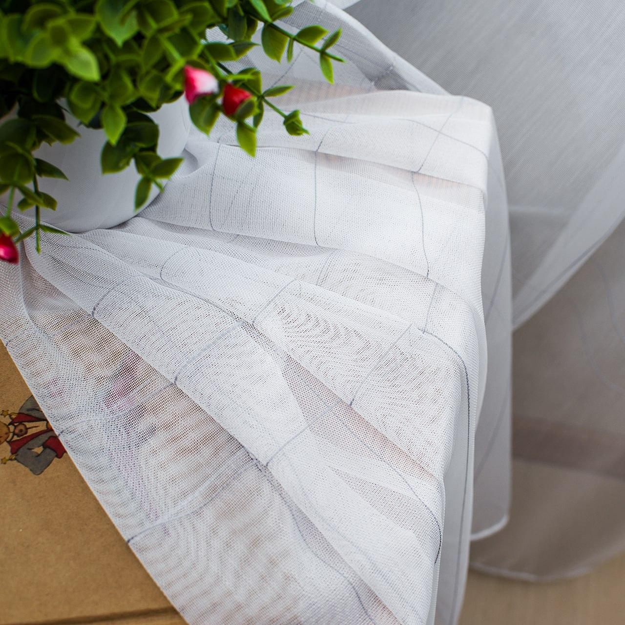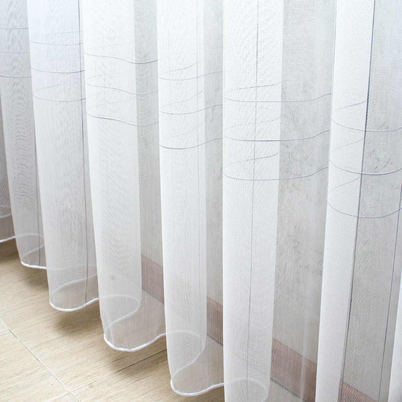 Готовый тюль бамбук, цвет белый с серыми полосками (3м*2,6м)