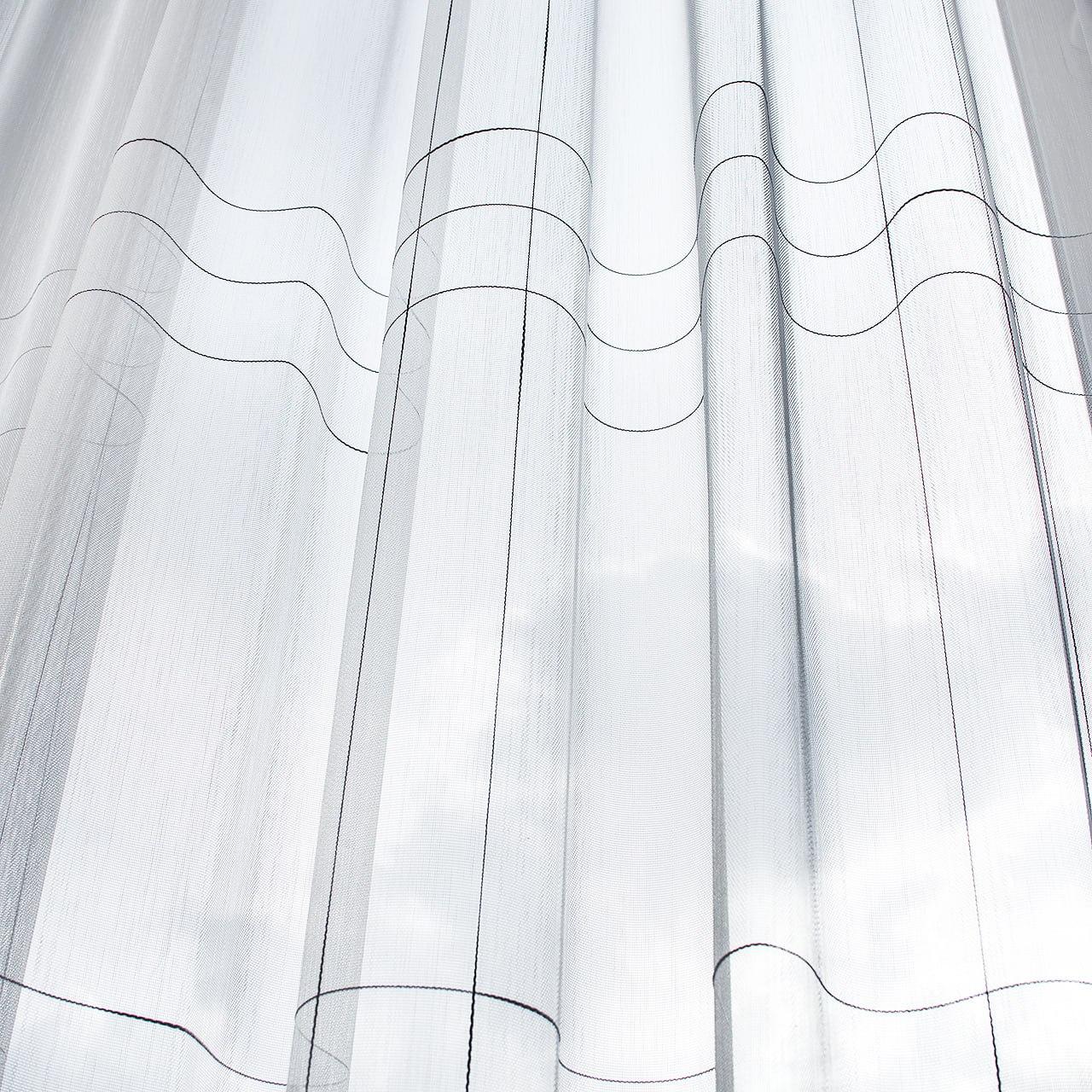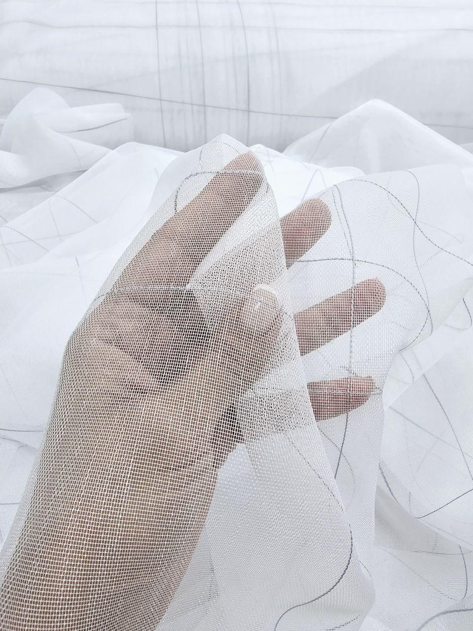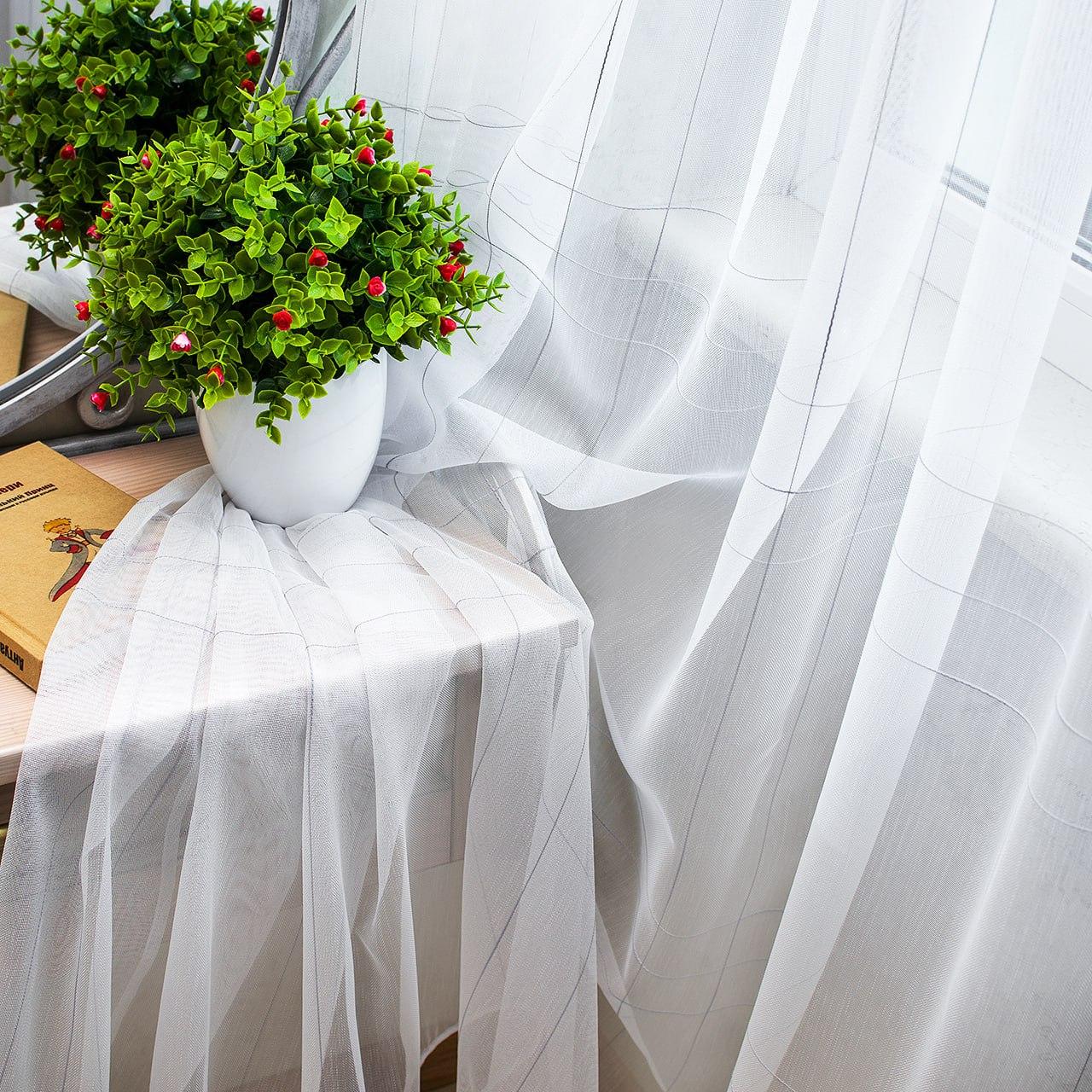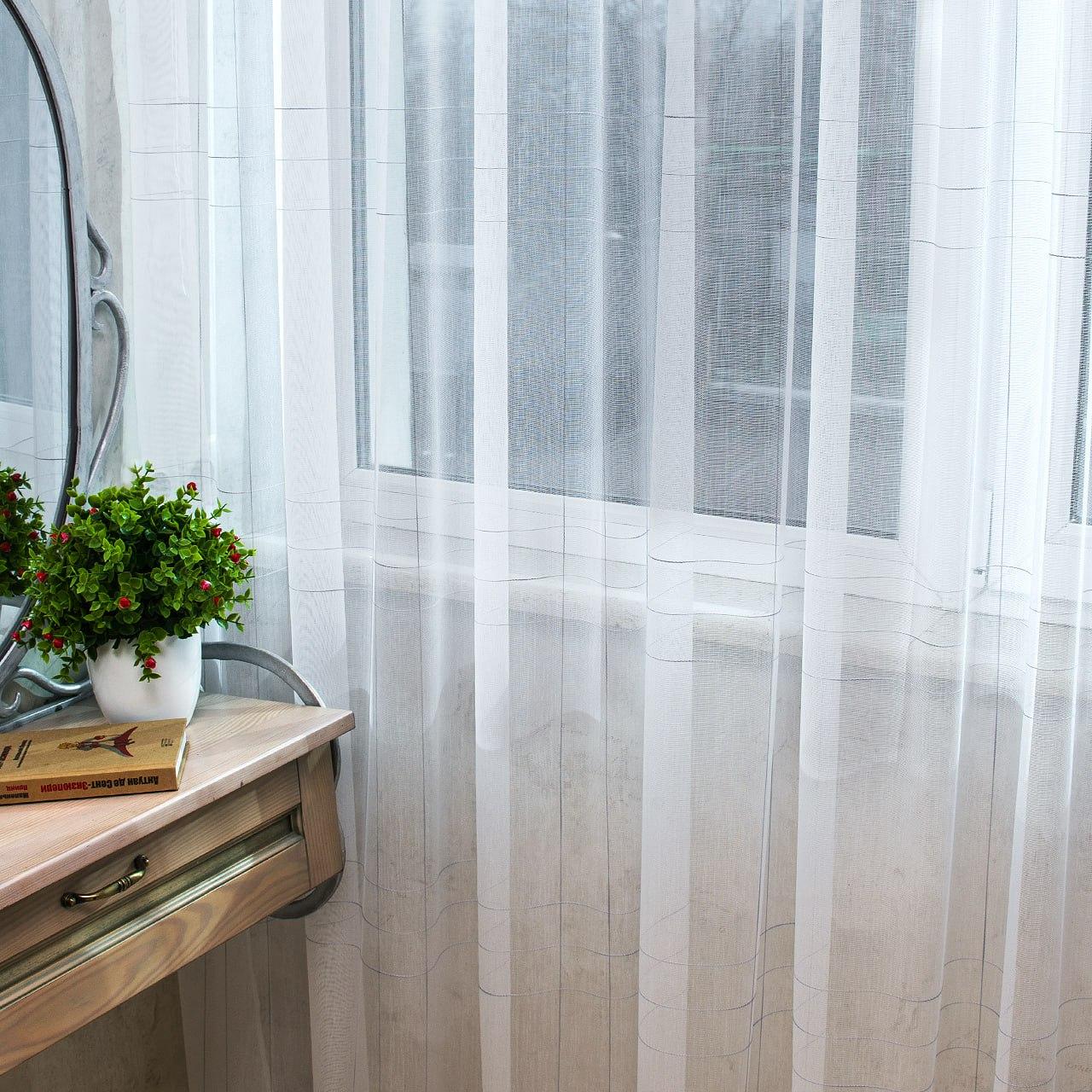 Готовый тюль бамбук, цвет белый с серыми полосками (3м*2,6м)