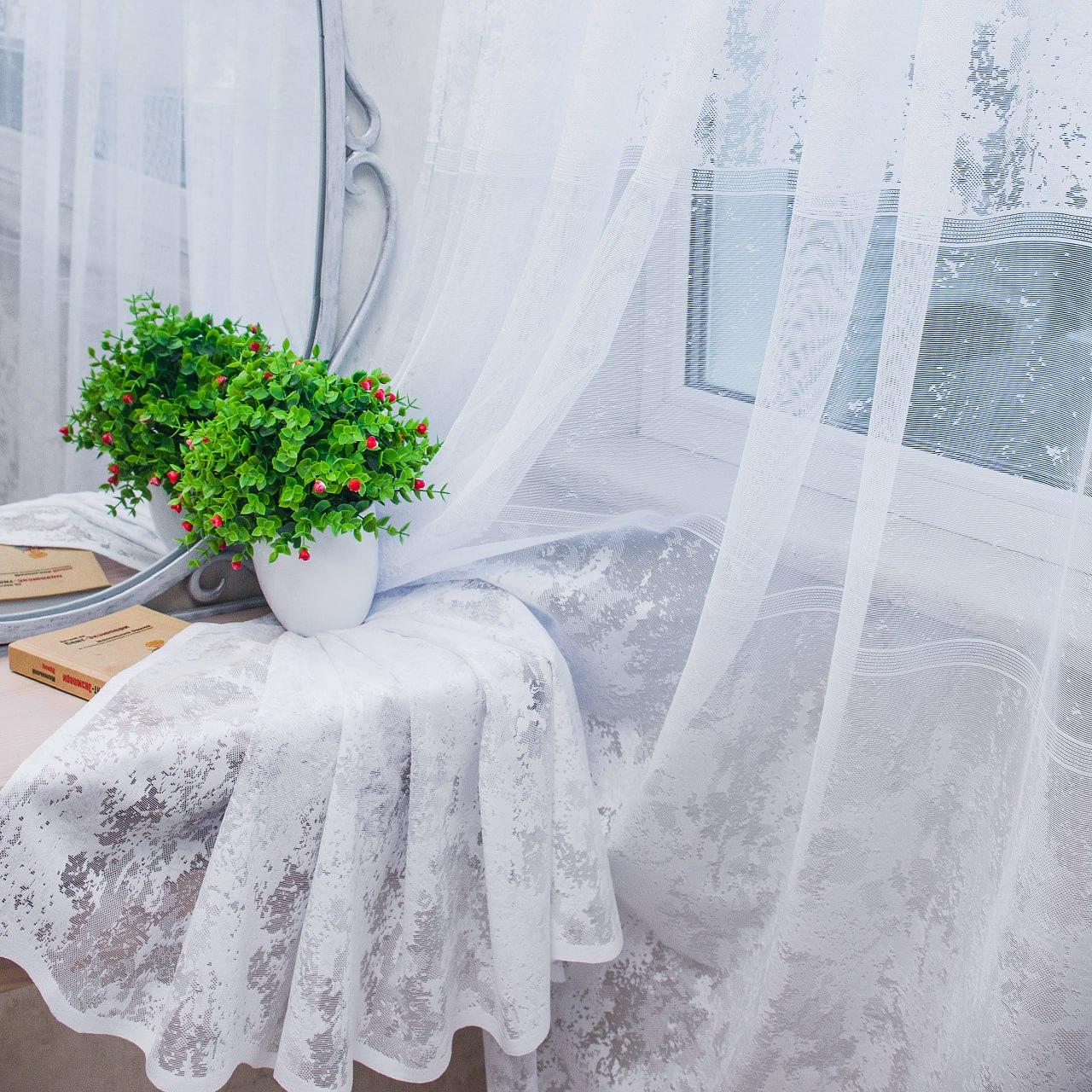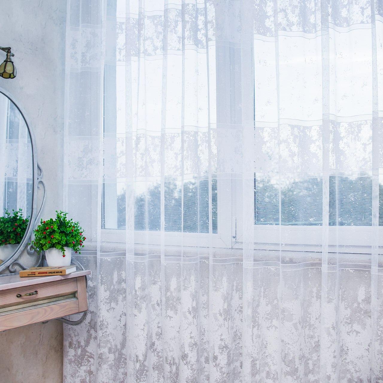 Белый тюль жаккард Marmoris