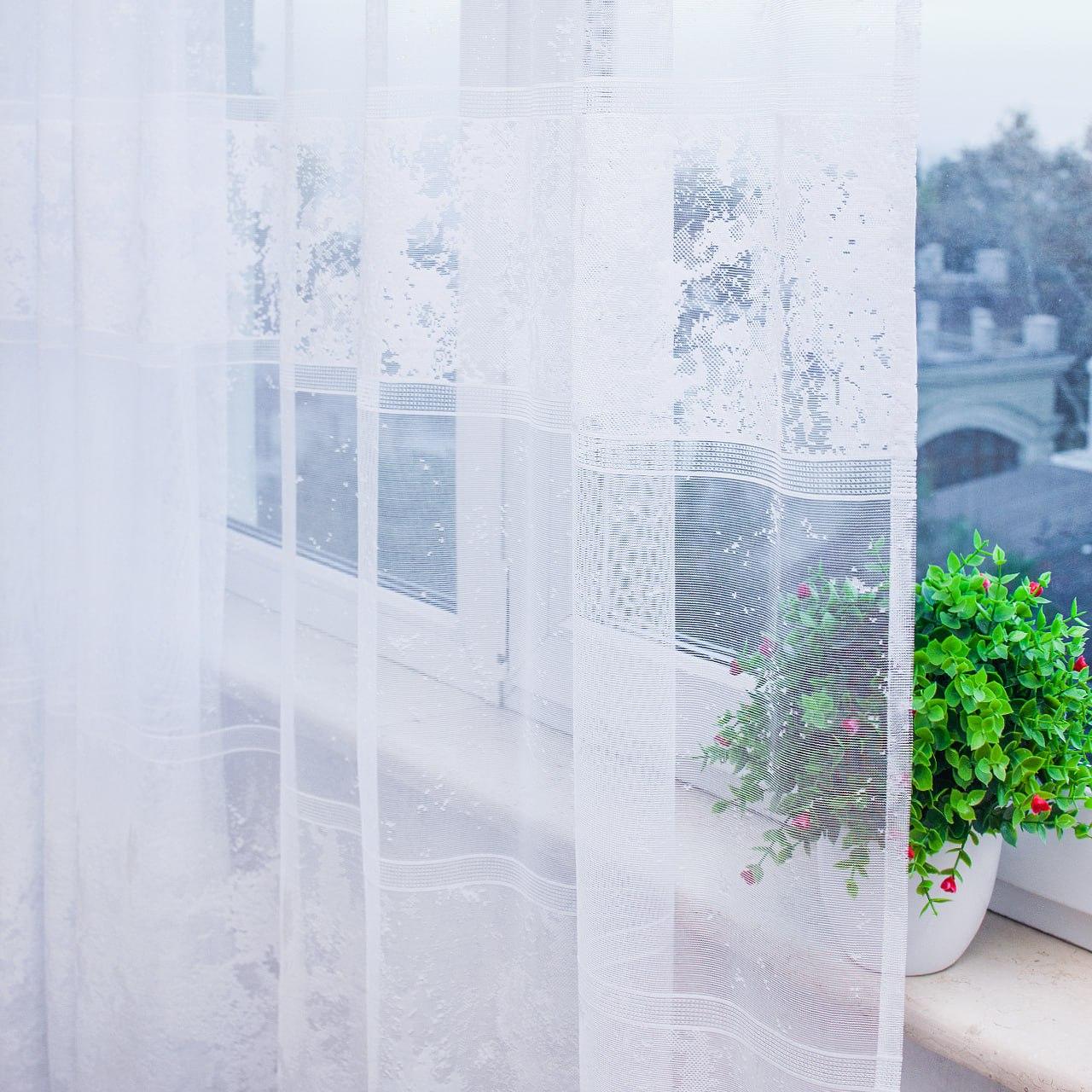 Или заказать пошив готового тюля. В услугу входит пошив тесьмы под крючки (тесьма на карниз трубу или люверсы), обработка всех краев после отреза от рулона, пошив на индивидуальную высоту.
