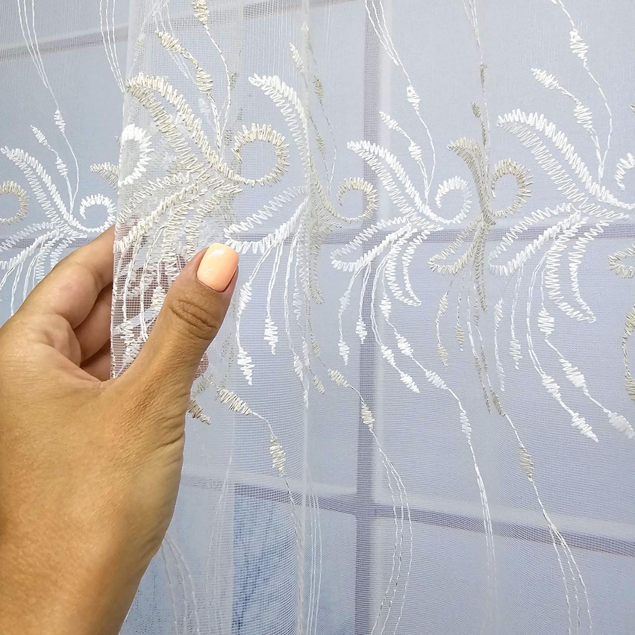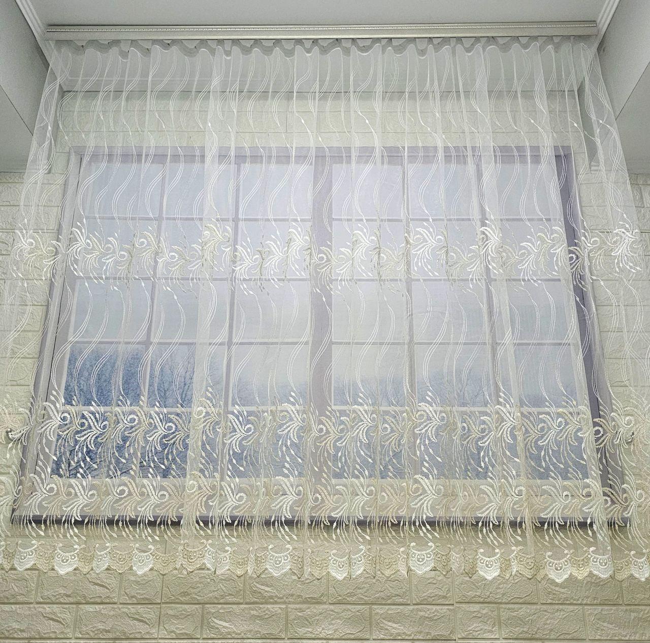 Готовый короткий тюль на кухню, балкон, веранду, дачу. Цвет молочный с бежевым (3,3м*1,45м)