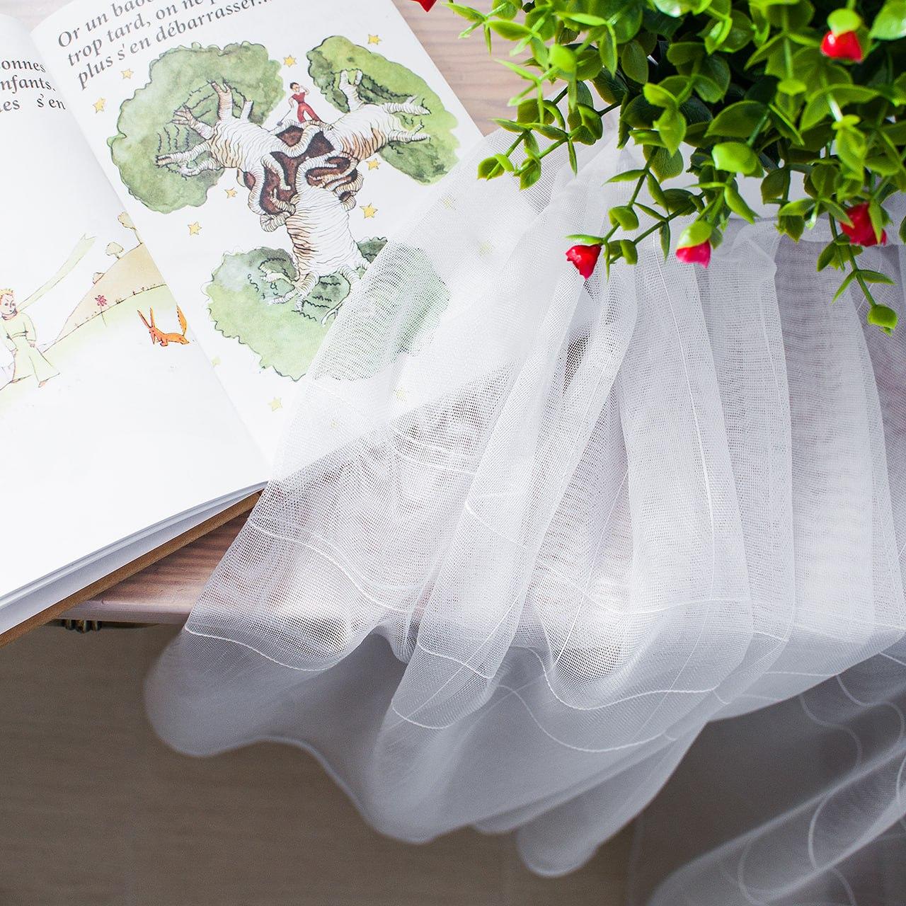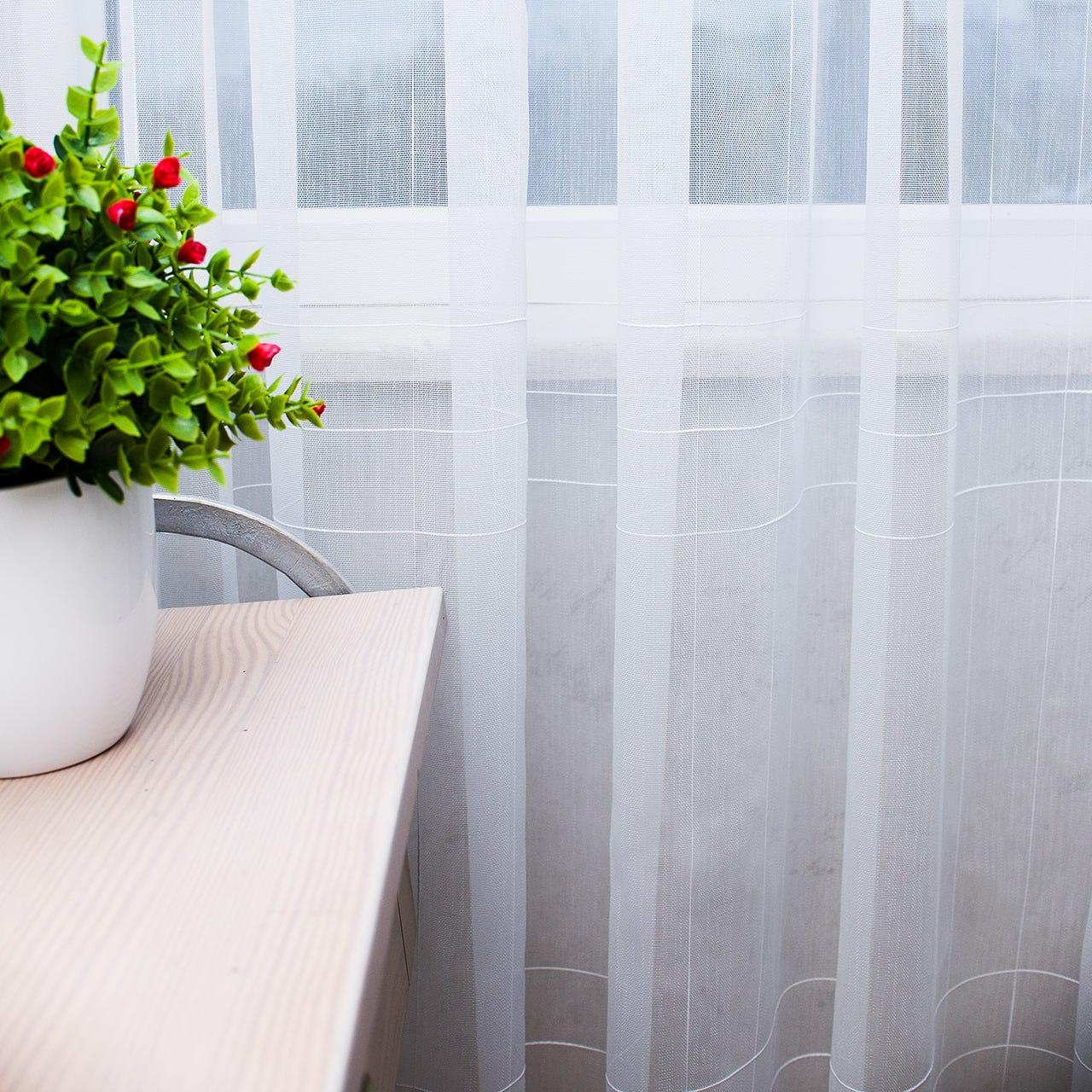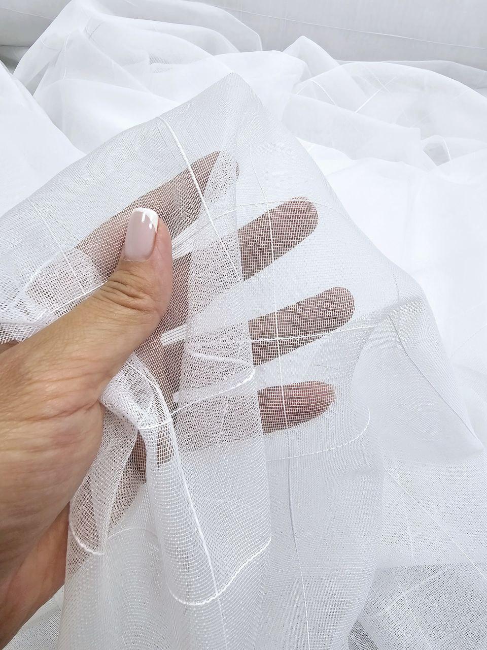 Готовый тюль бамбук с полосами, цвет белый (3м*2,5м)