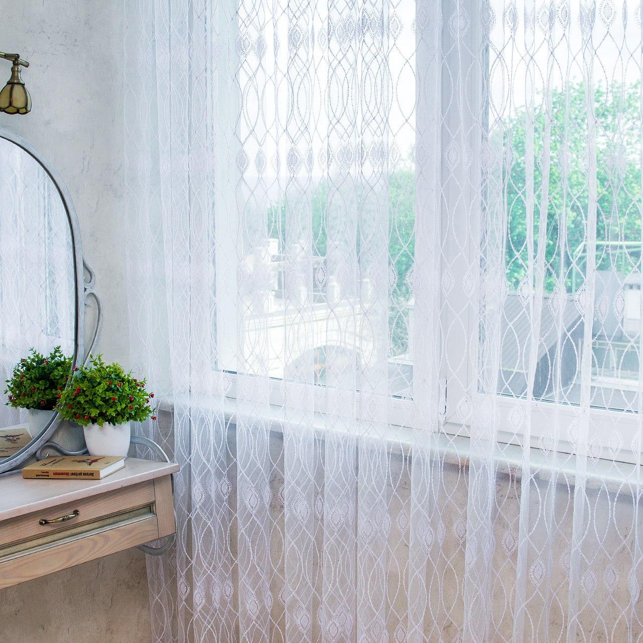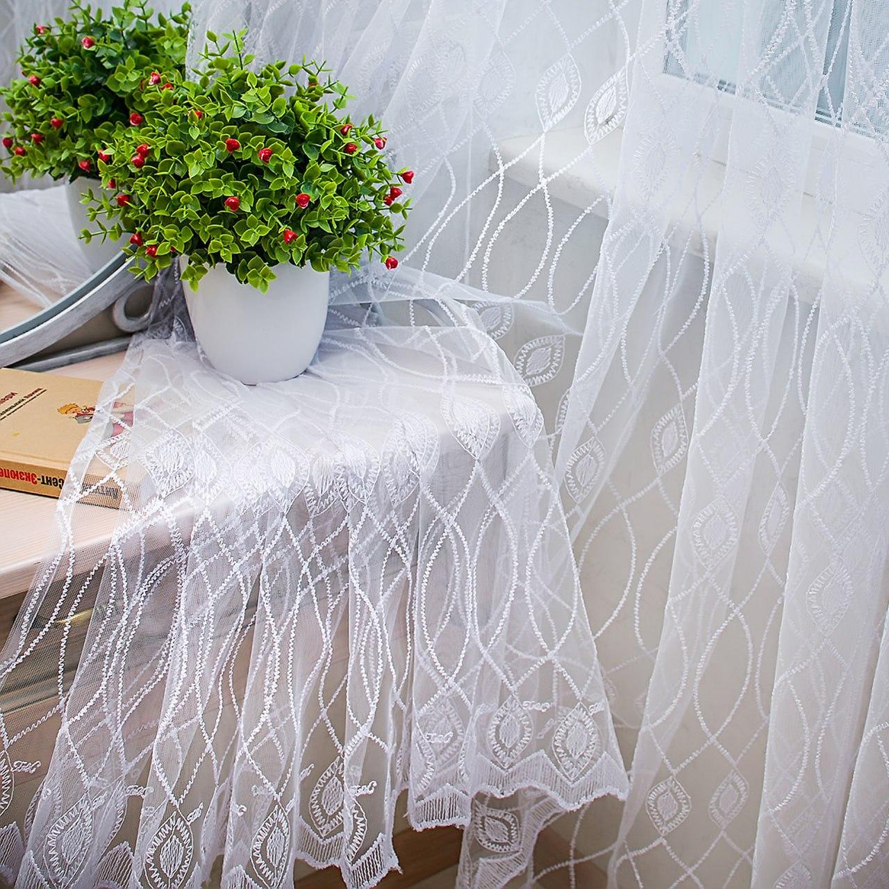 Готовый тюль фатин с вышивкой, цвет белый (3м*2,5м)