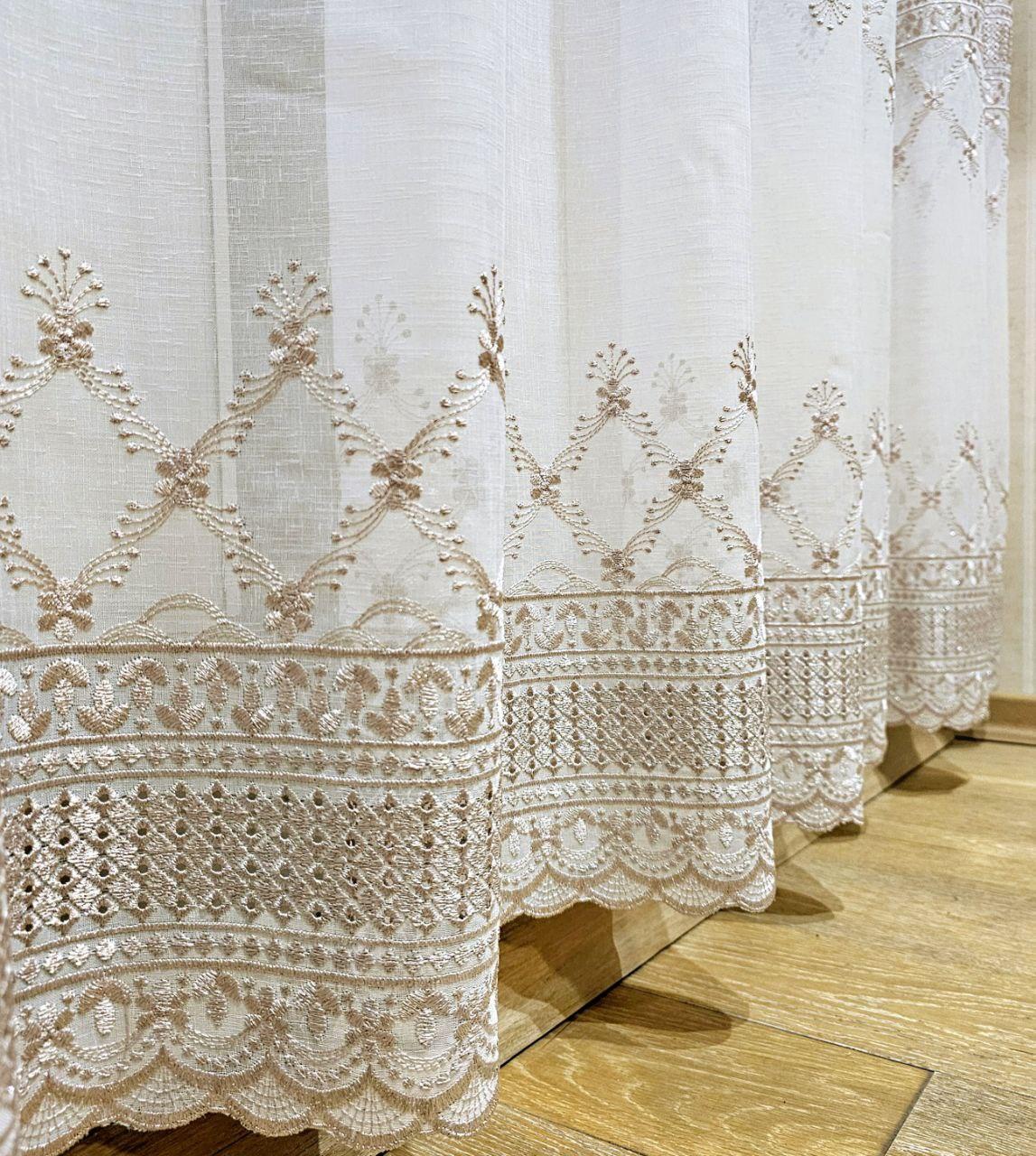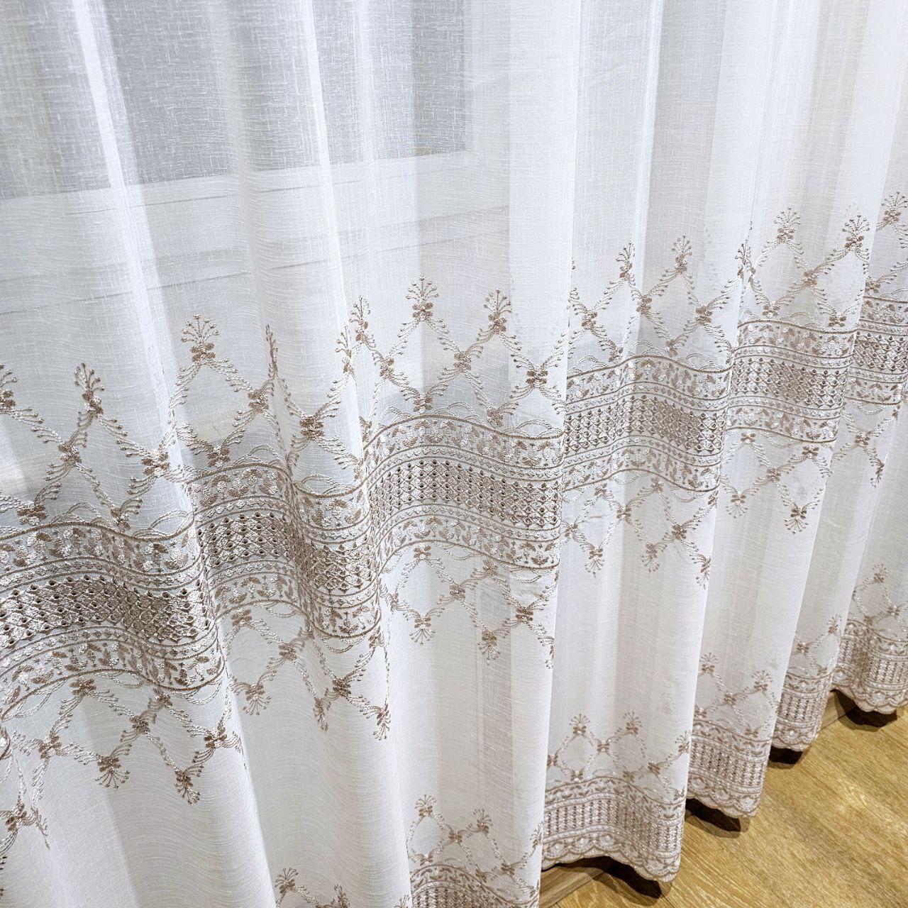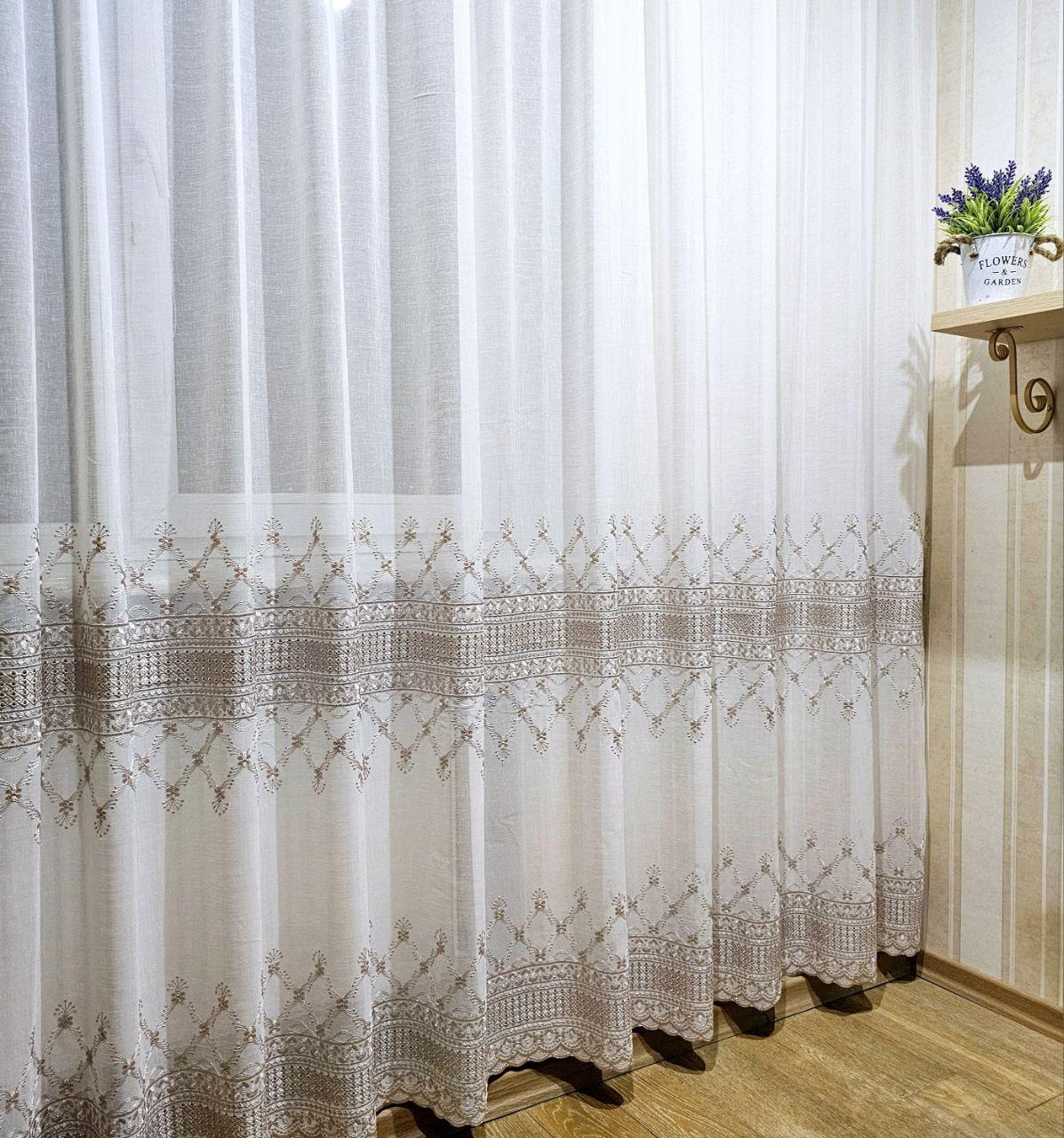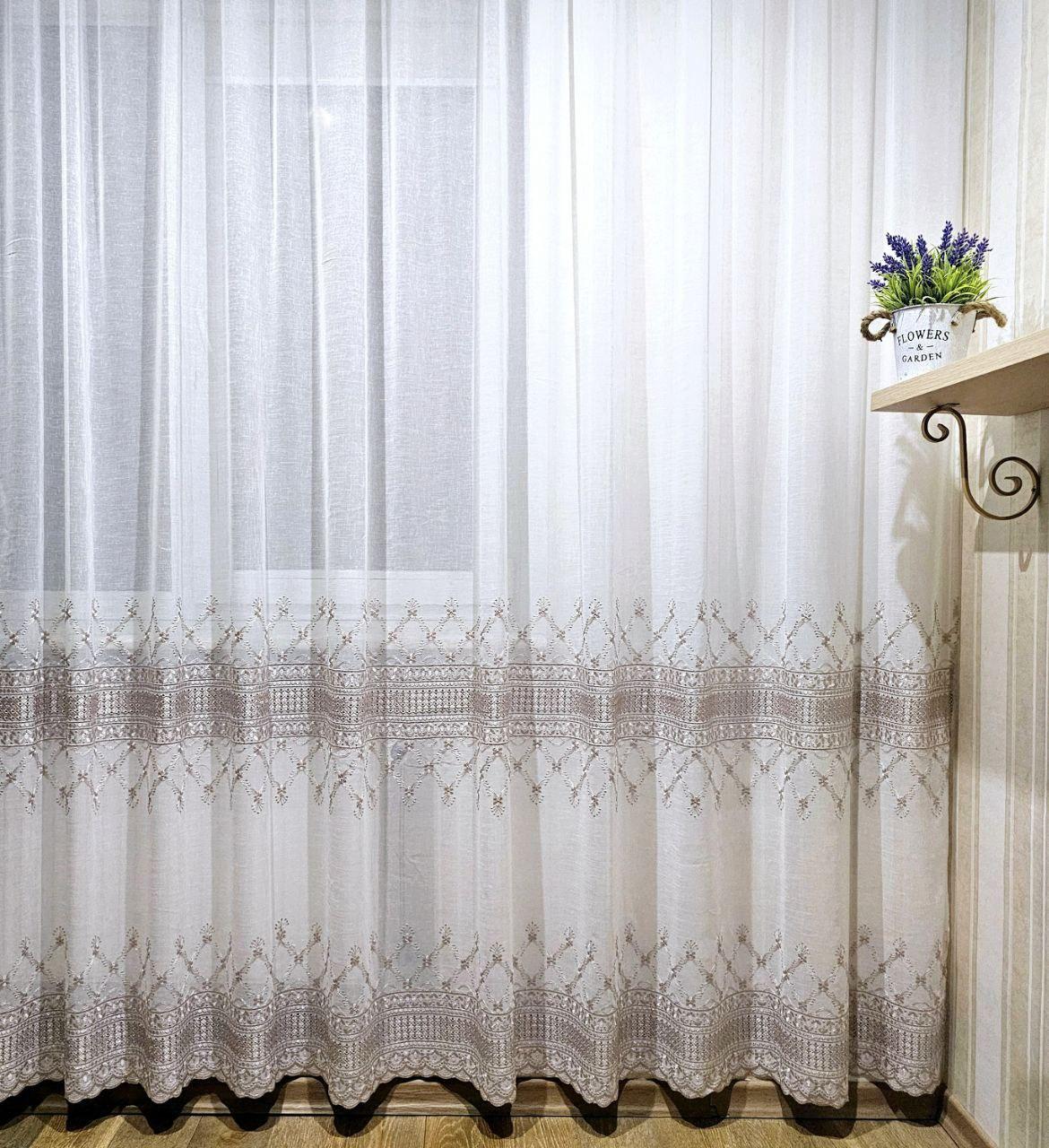 Готовый тюль лен белый с вышивкой (3м*2,6м)