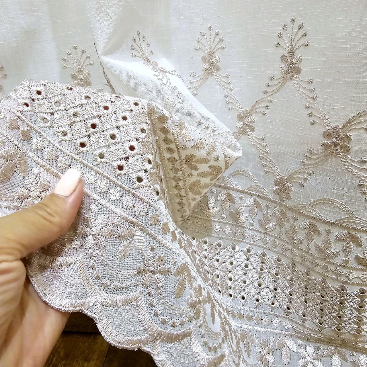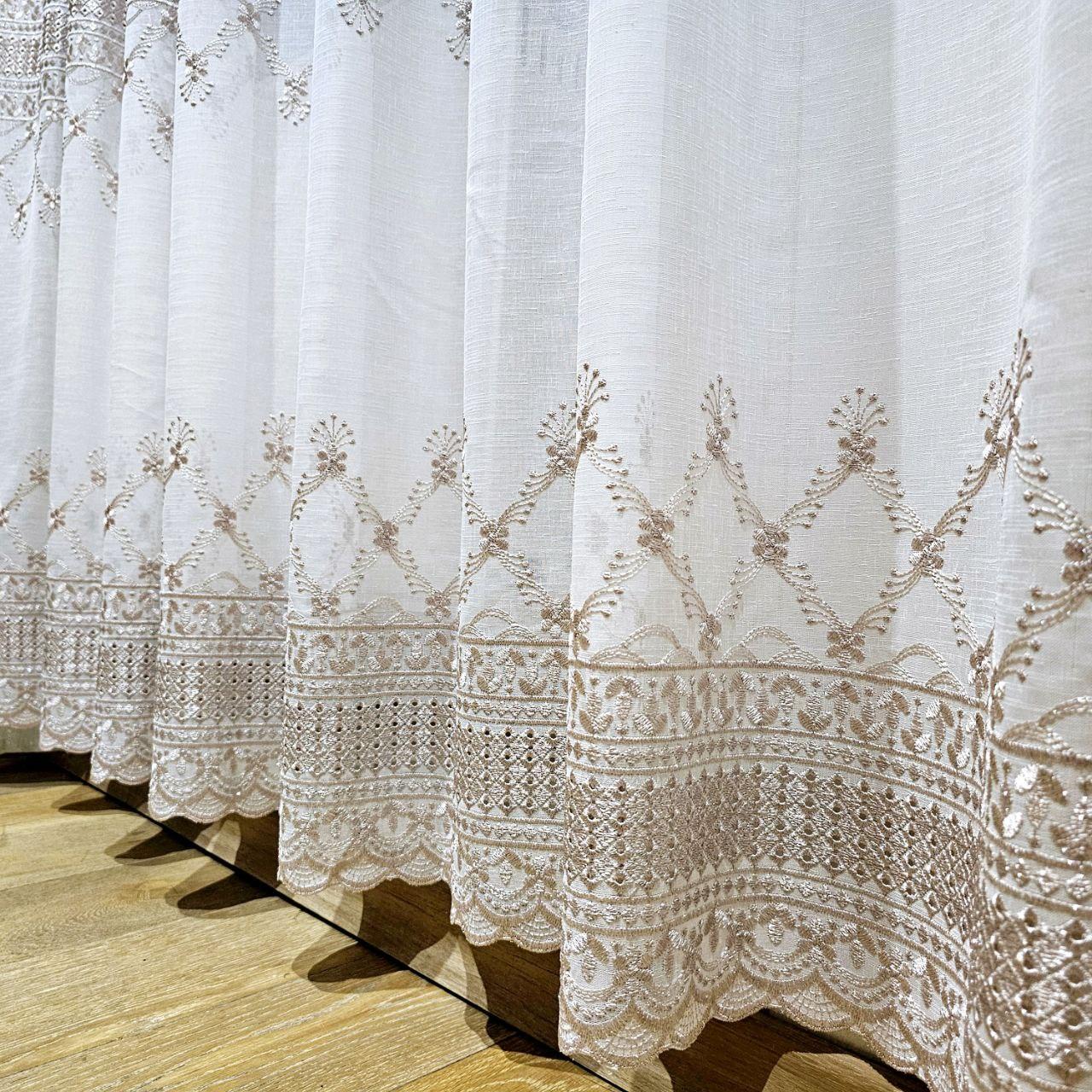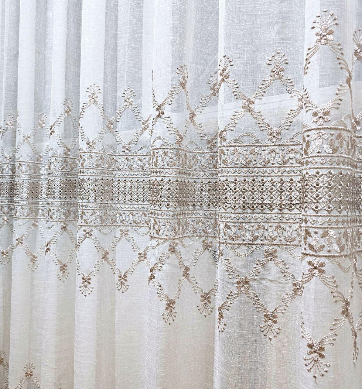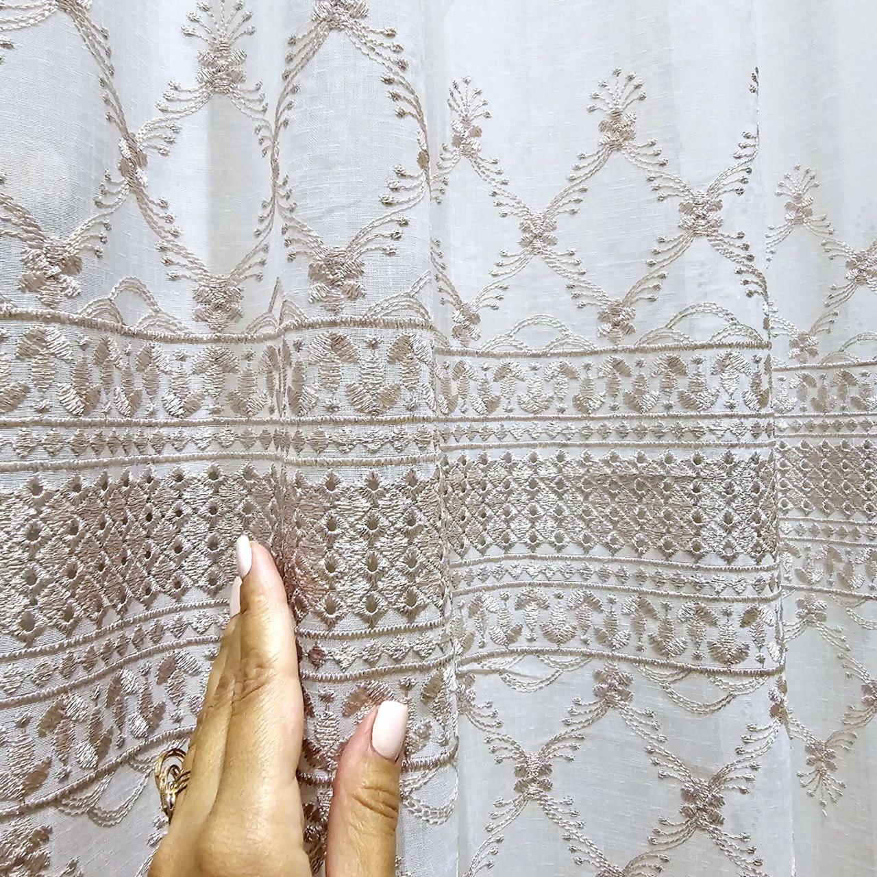 Готовый тюль лен белый с вышивкой (3м*2,6м)