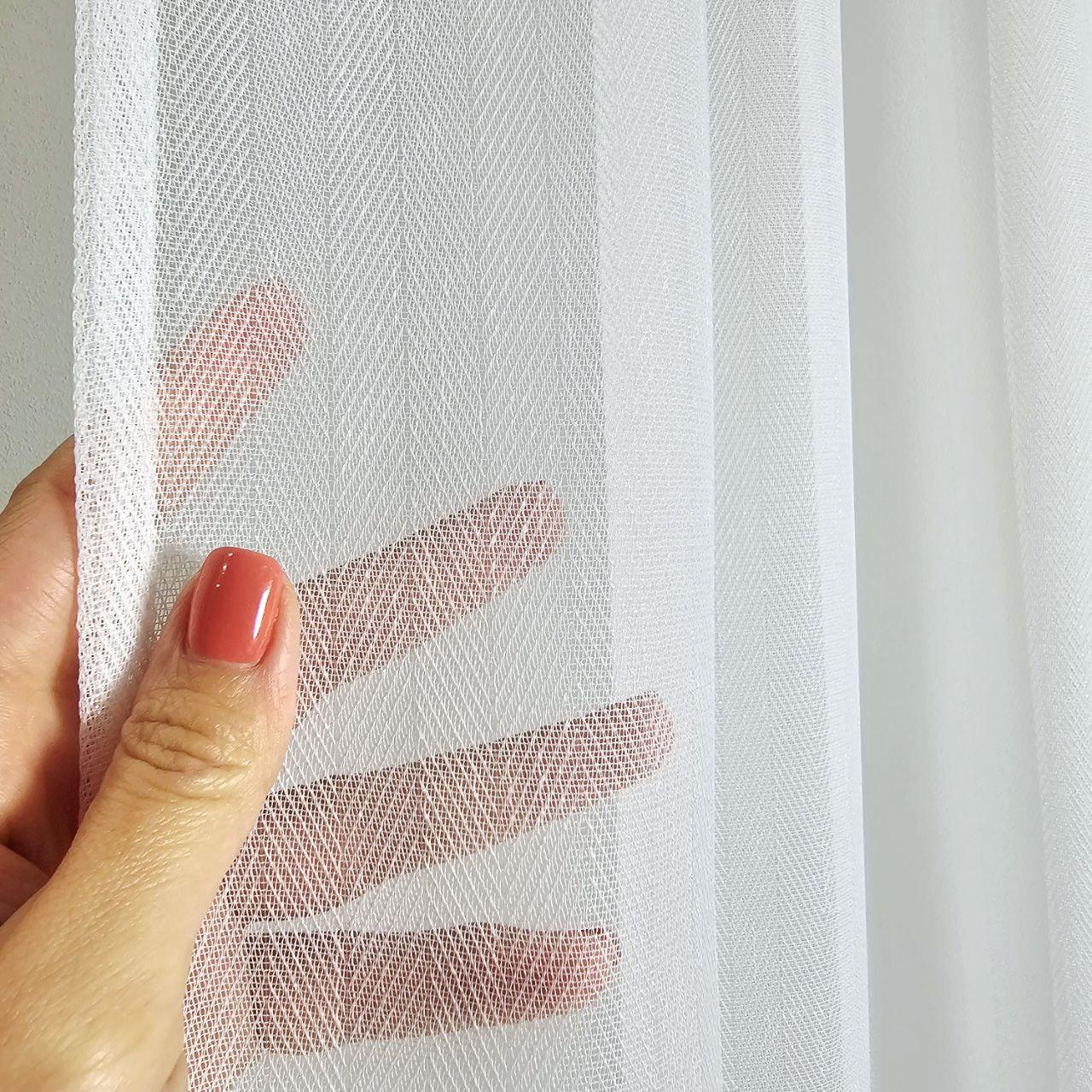 Готовый тюль лен елочка. Цвет белый (3м*2,3м)