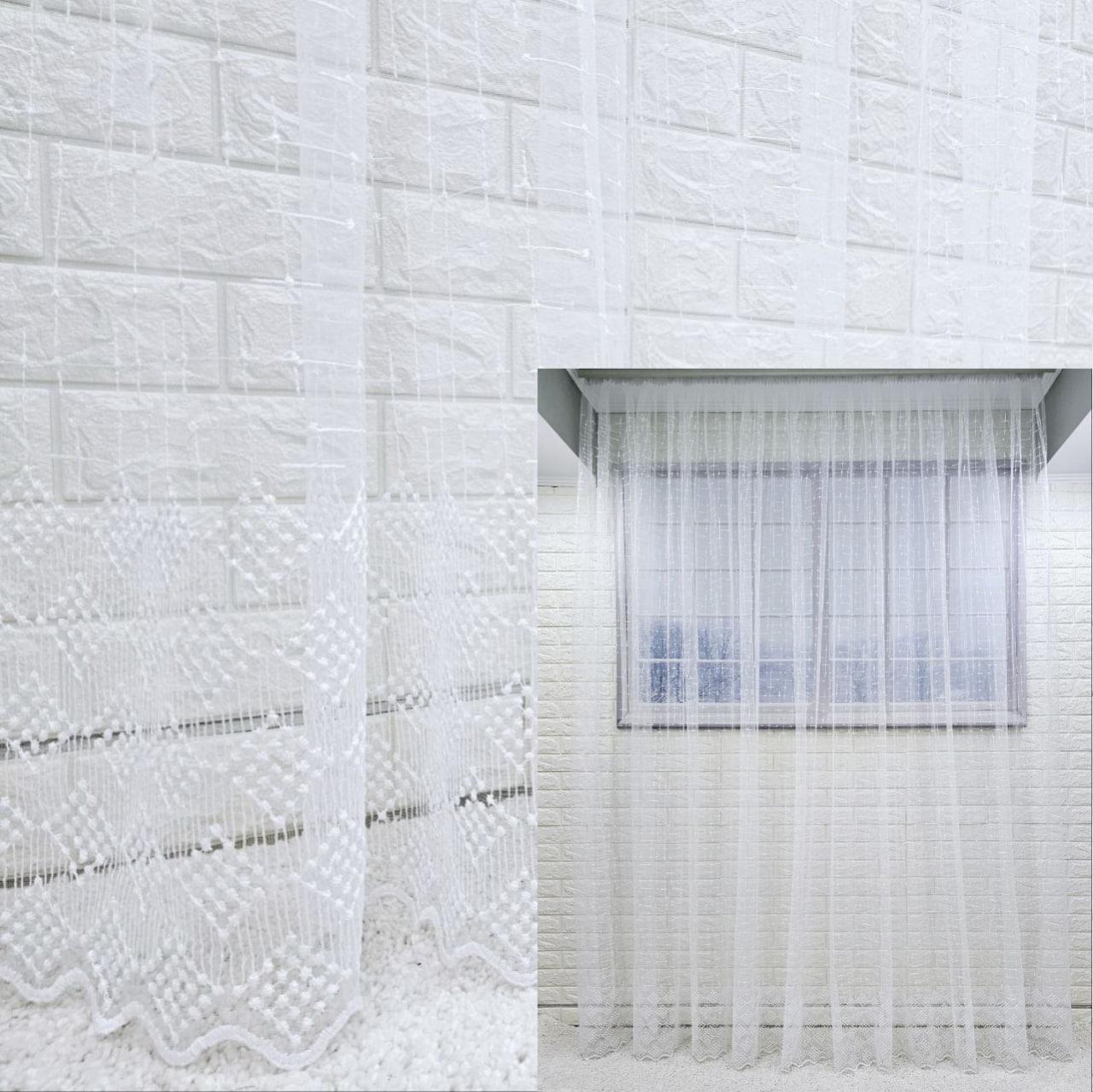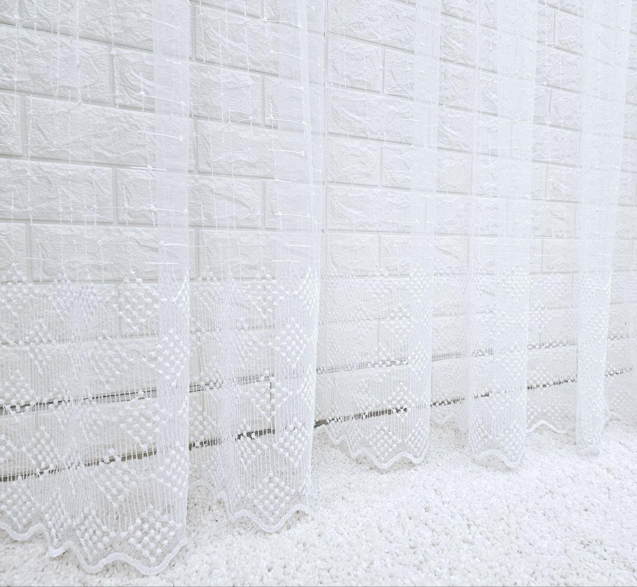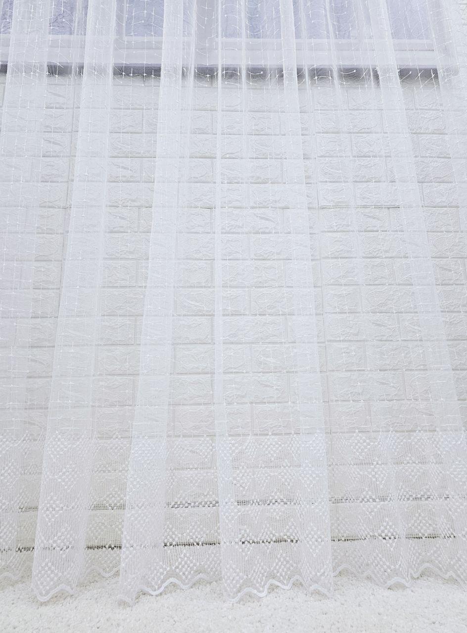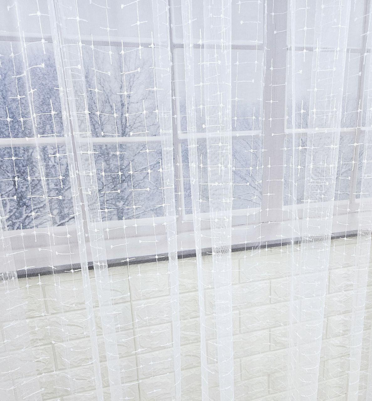 Готовый тюль микросетка с вышивкой, цвет белый (3,5м*2,5м)