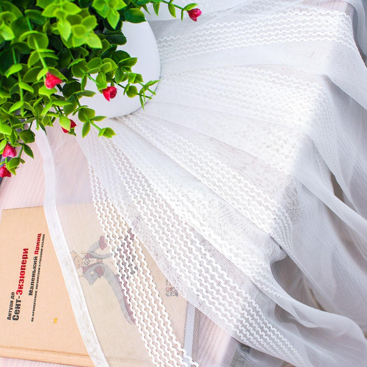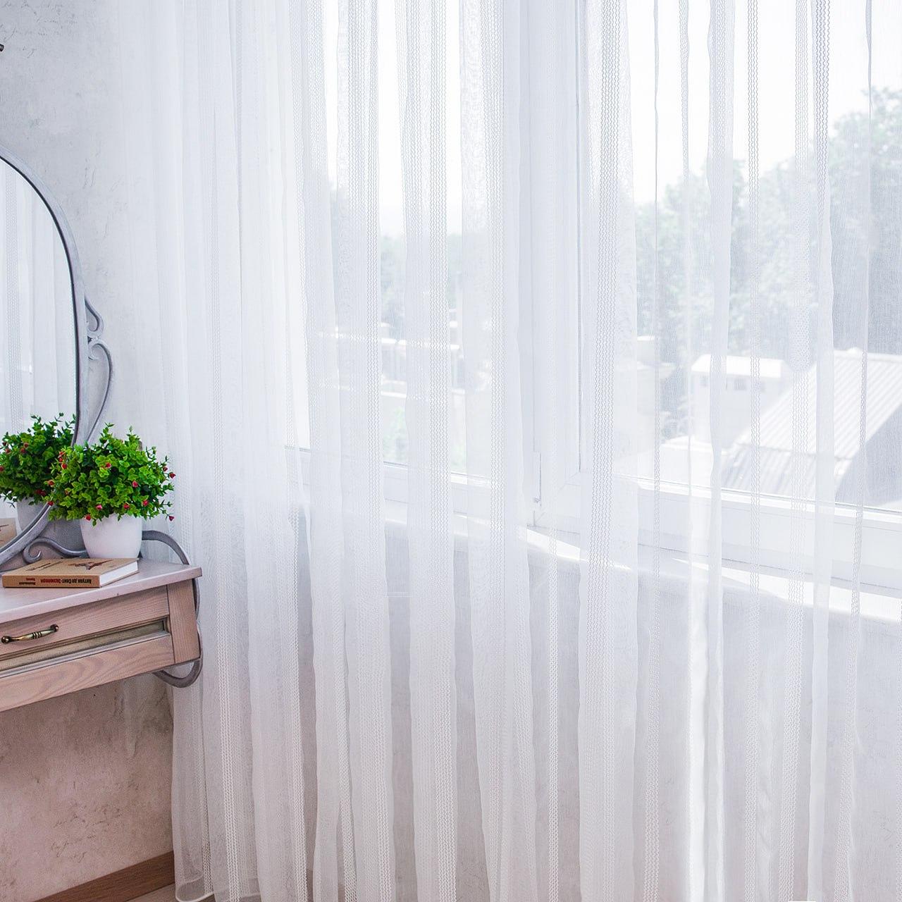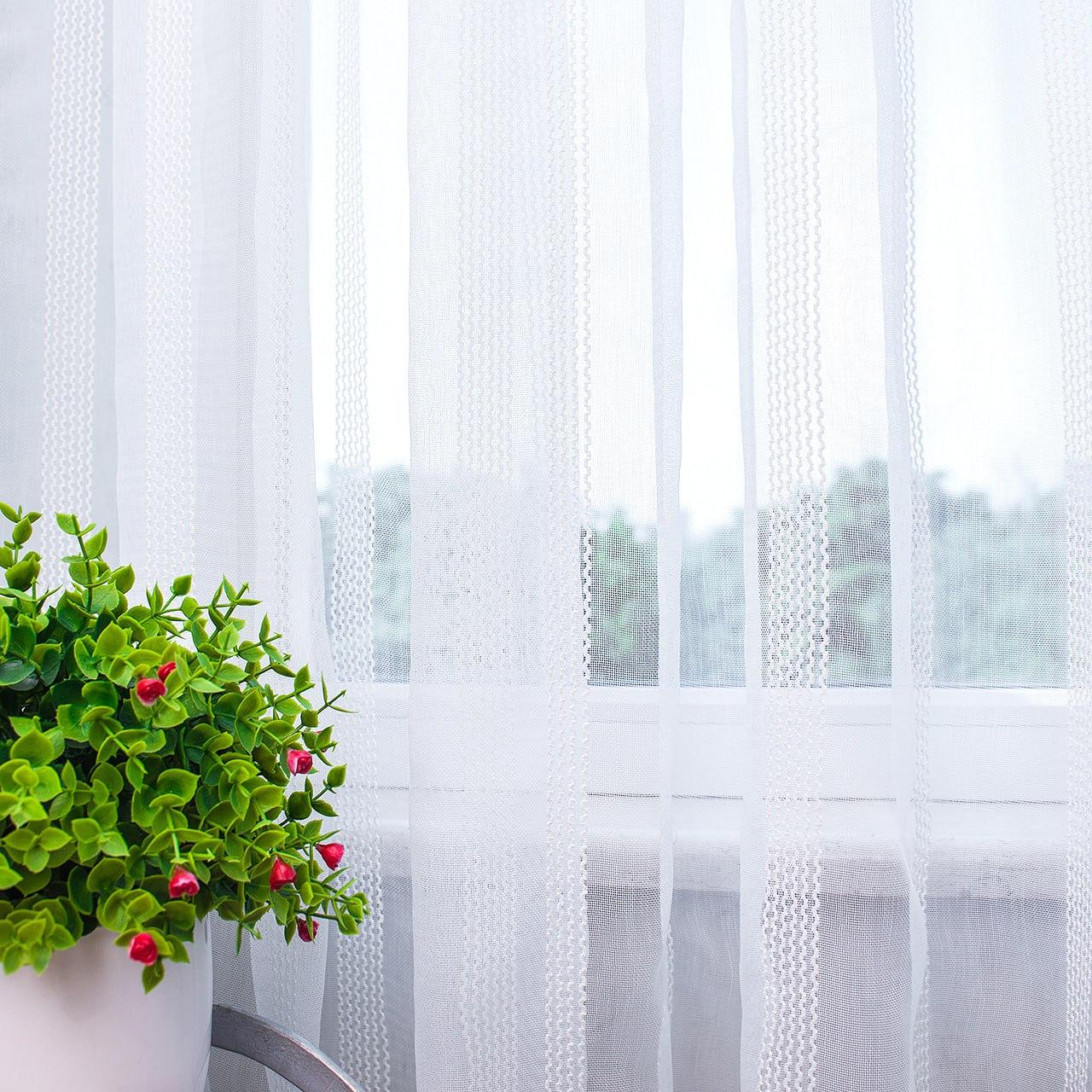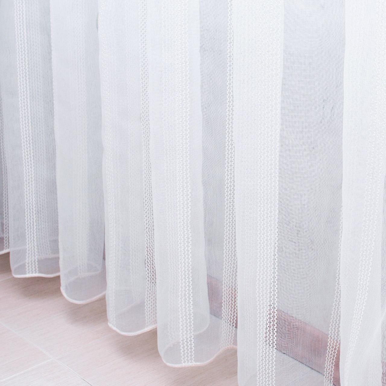 Готовый тюль микросетка с вертикальными полосами вышивкой, цвет белый (4м*2,5м)