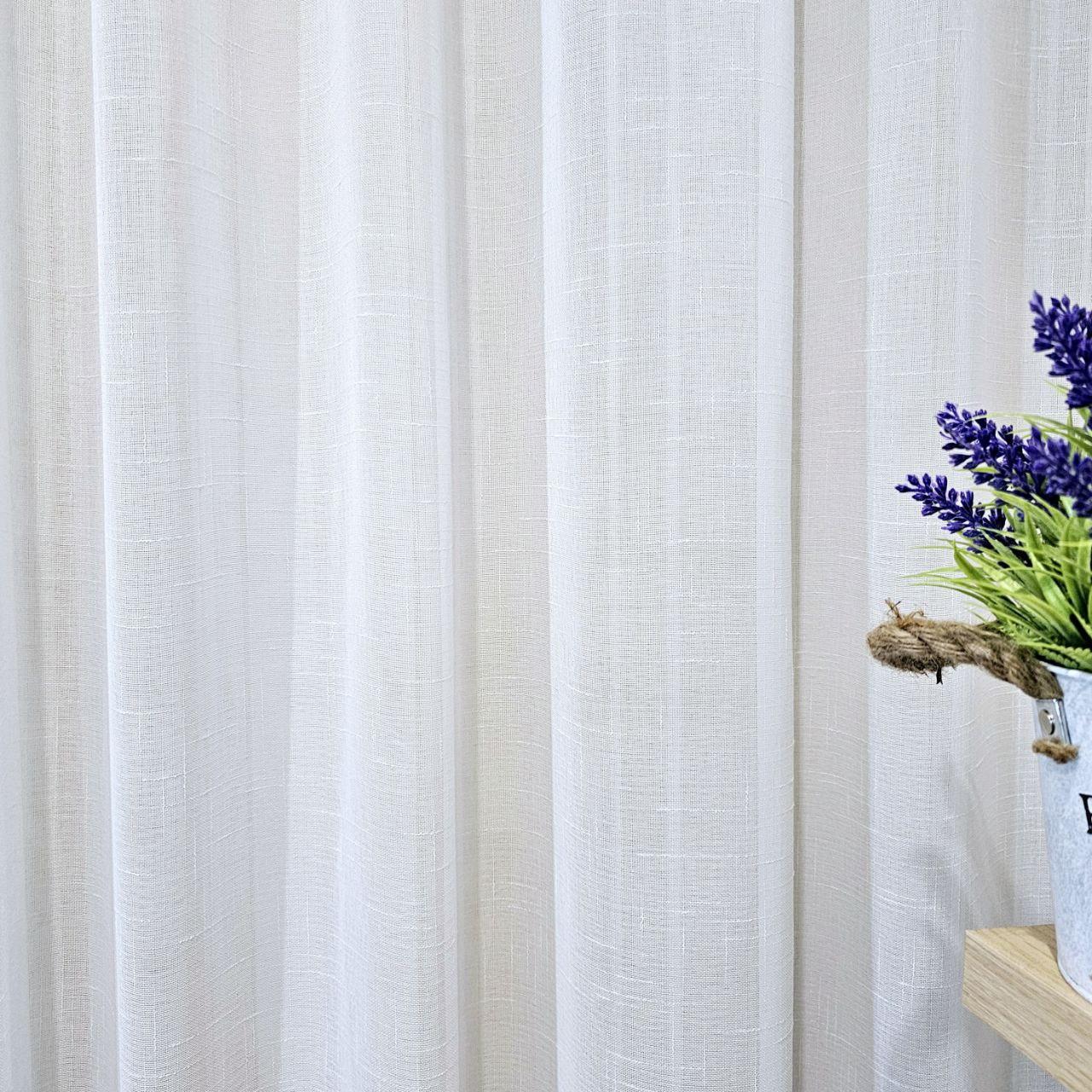 Готовый тюль на люверсах. Ткань лен. Цвет белый