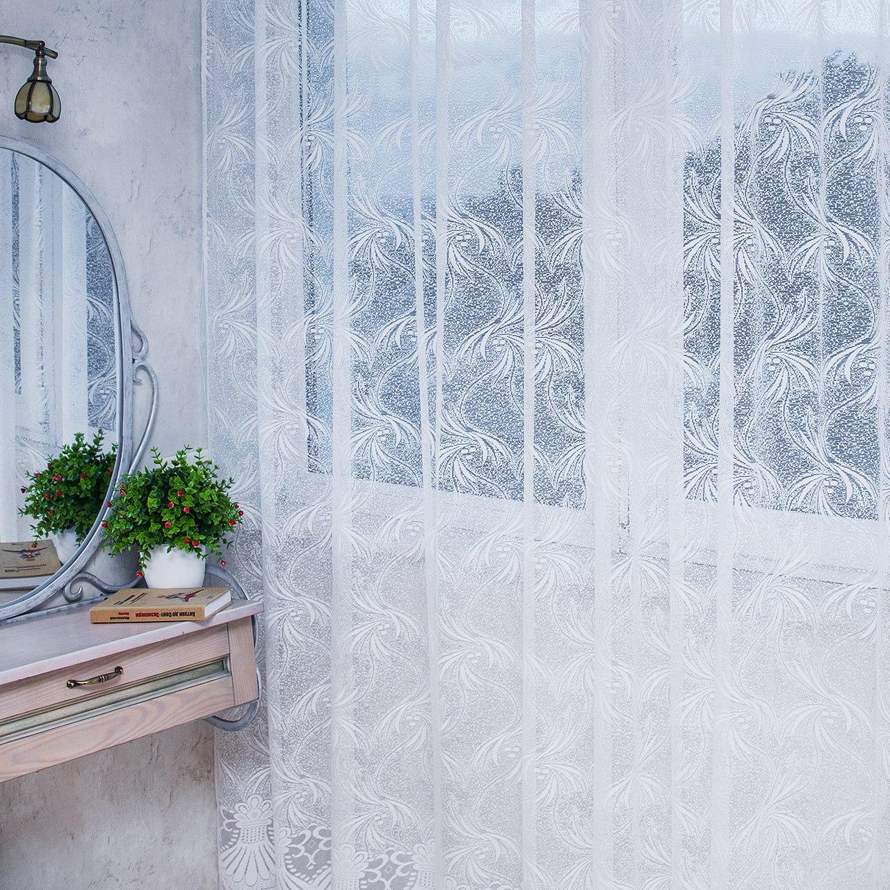 Готовый тюль жаккард, цвет белый (3,5м*2,5м)