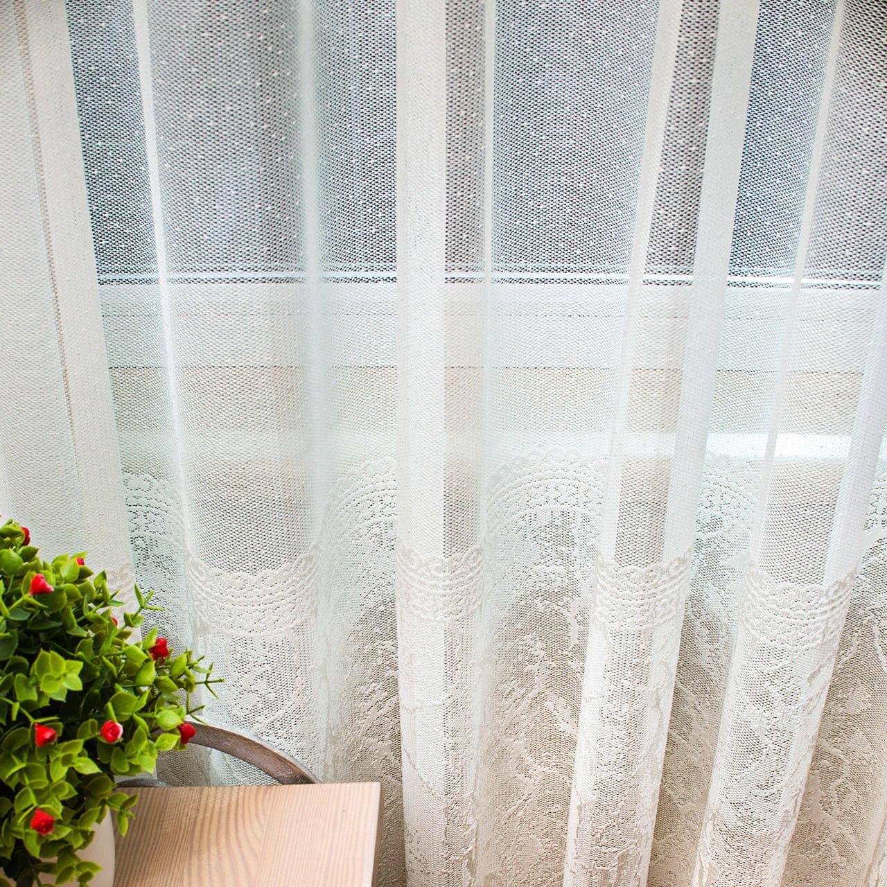 Готовый тюль жаккард с фактурным низом мрамор, коллекция Aylin. Цвет молочный (4м*2,6м)