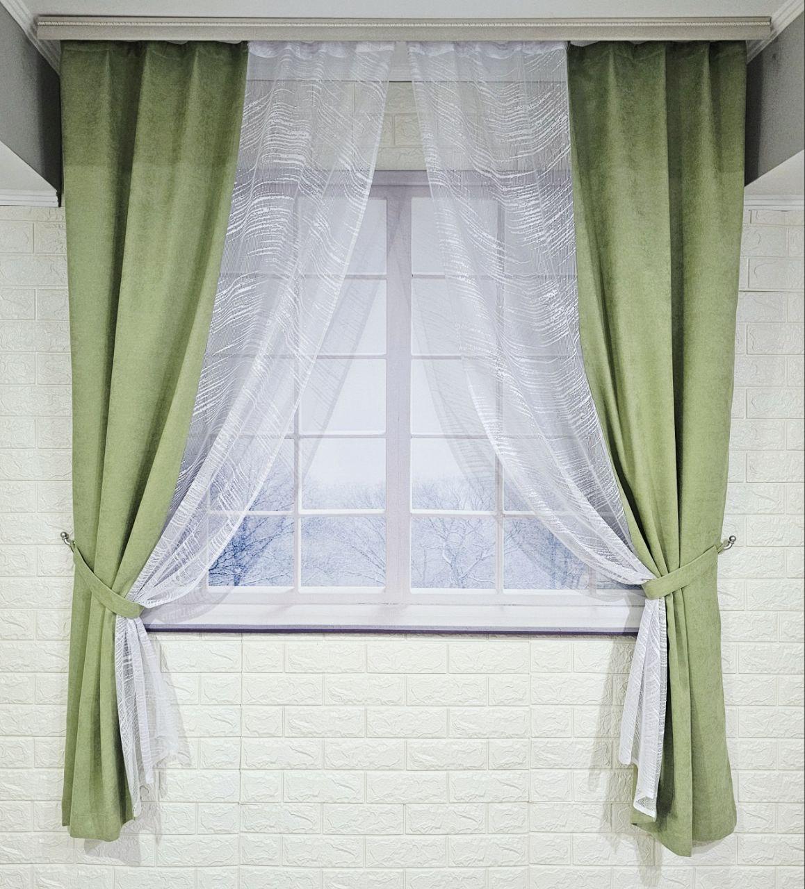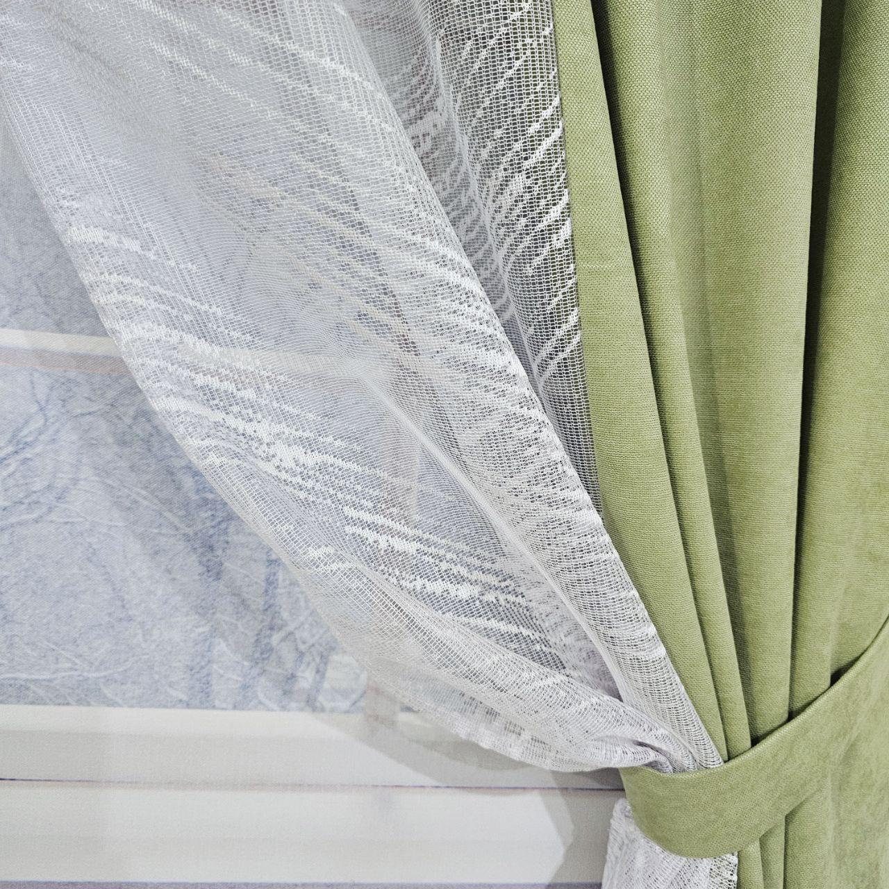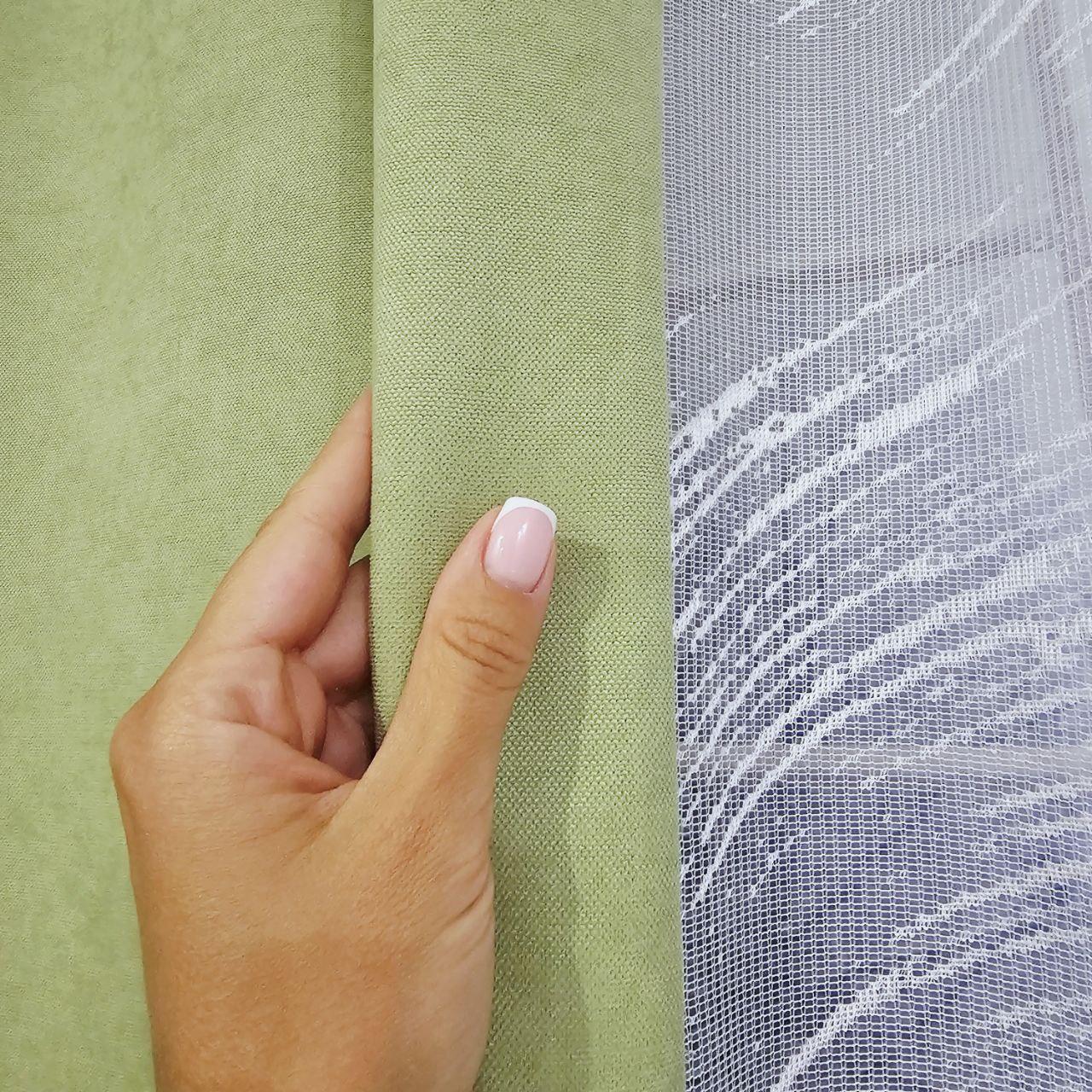 Комплект короткие шторы тюль. Цвет фисташковый с белым