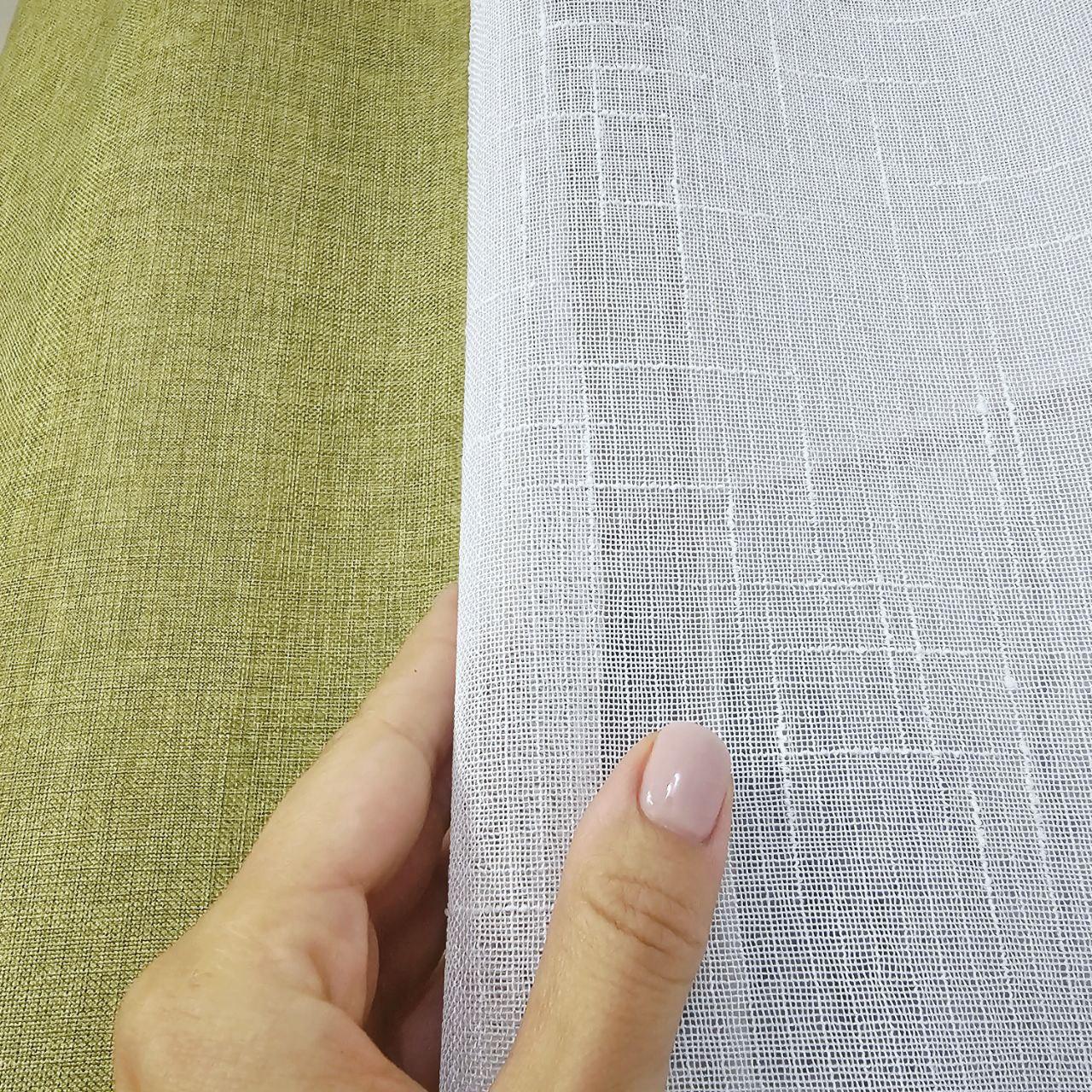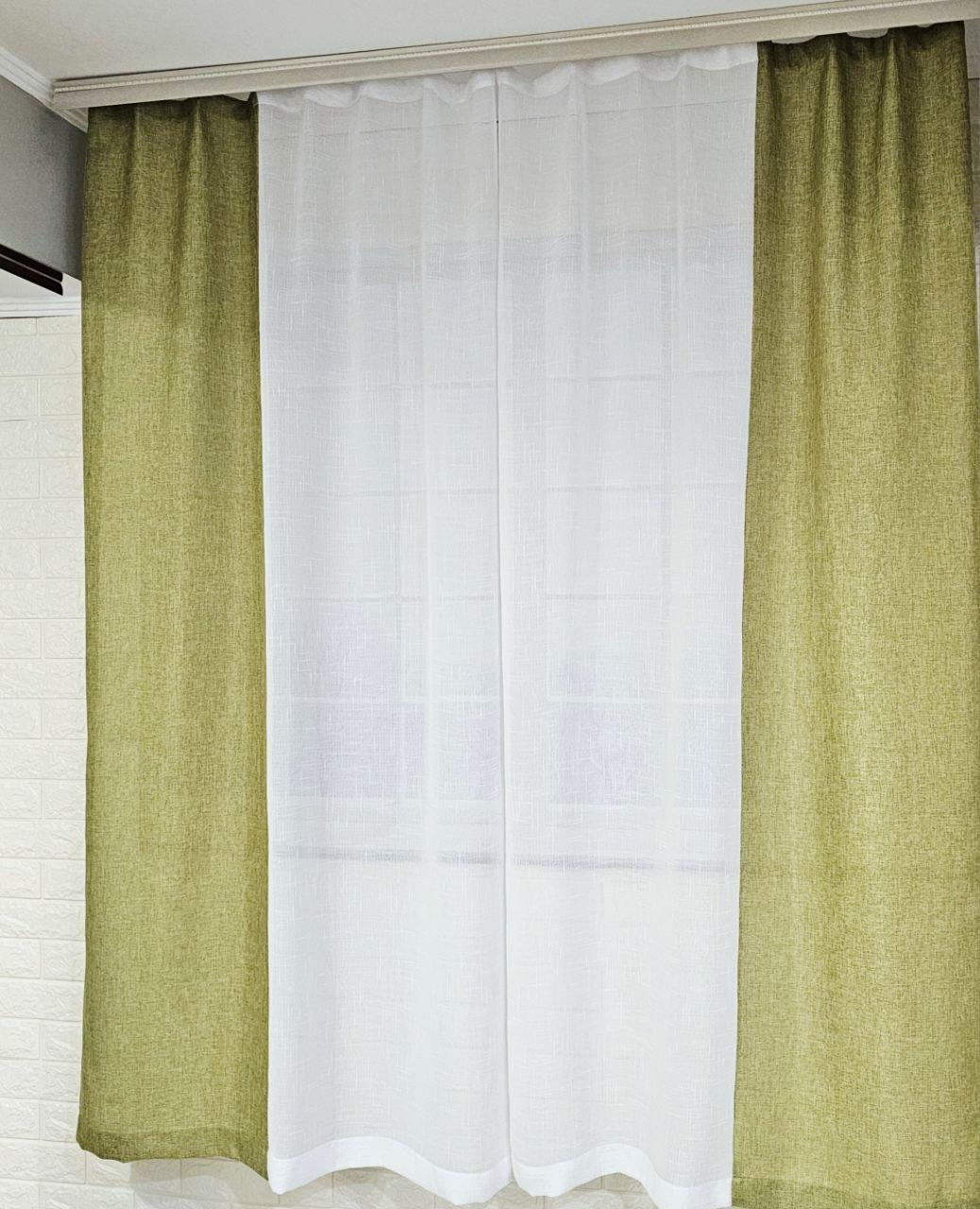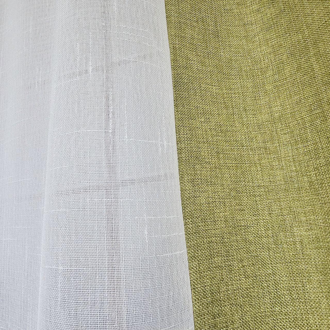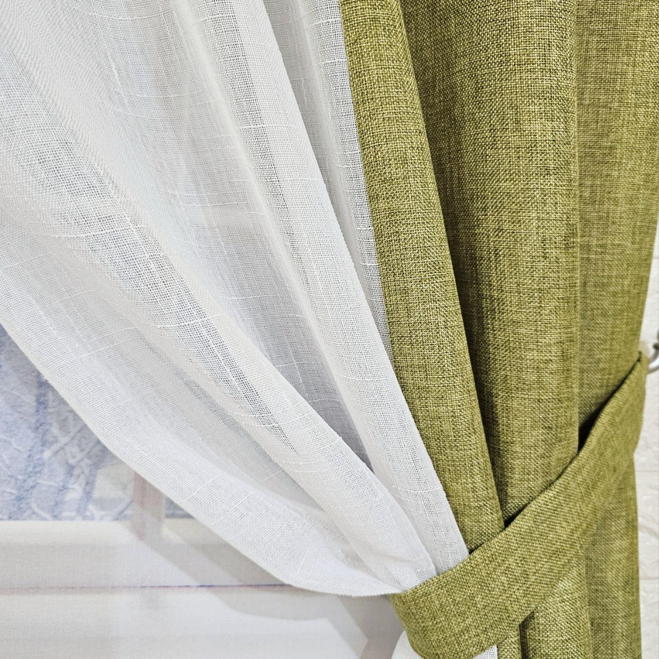 Комплект короткие шторы тюль. Цвет оливковый с белым