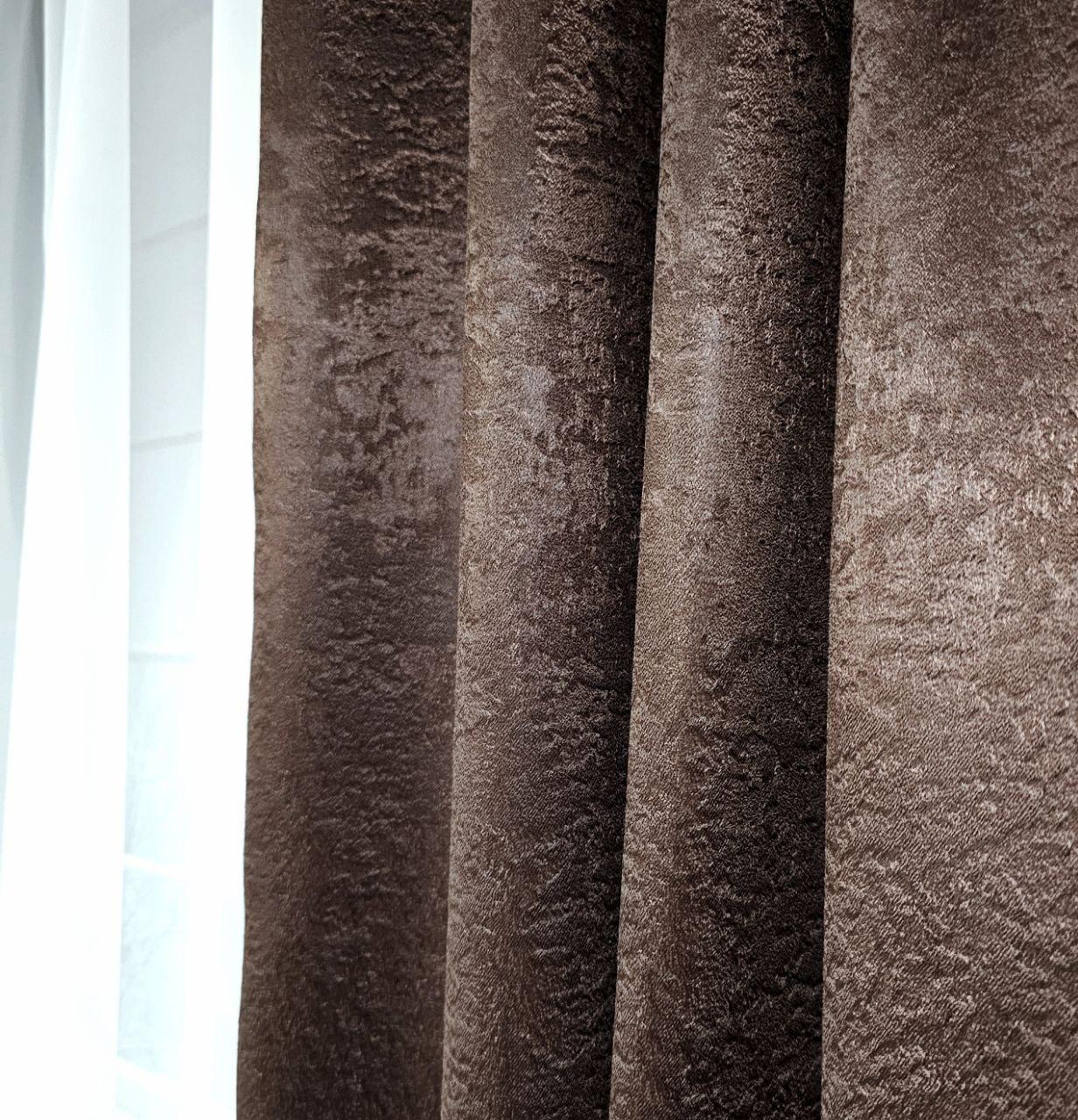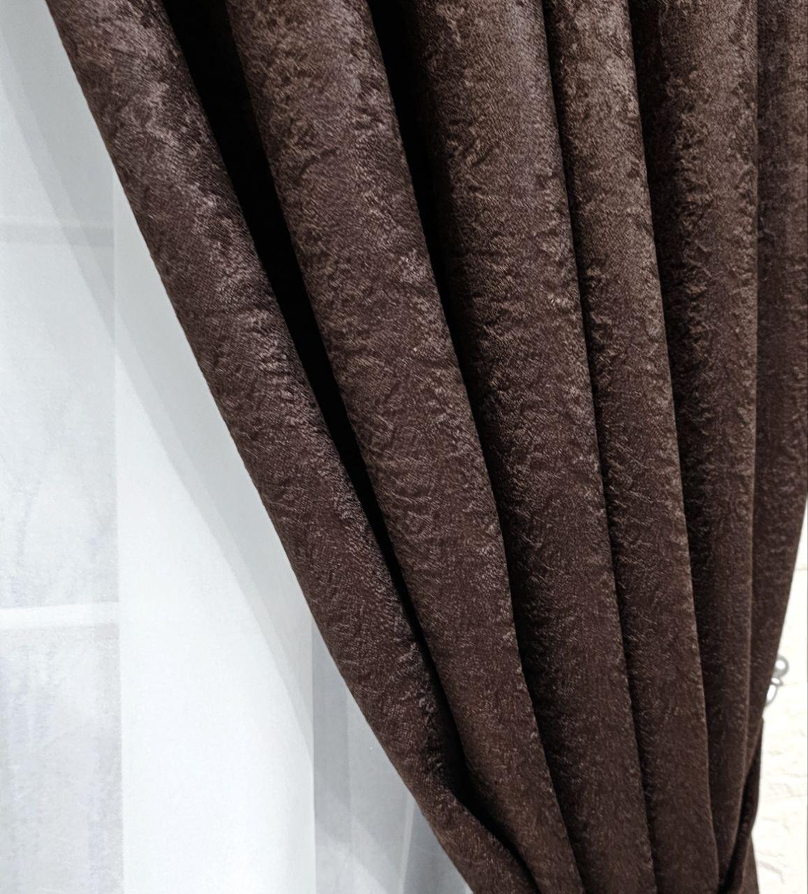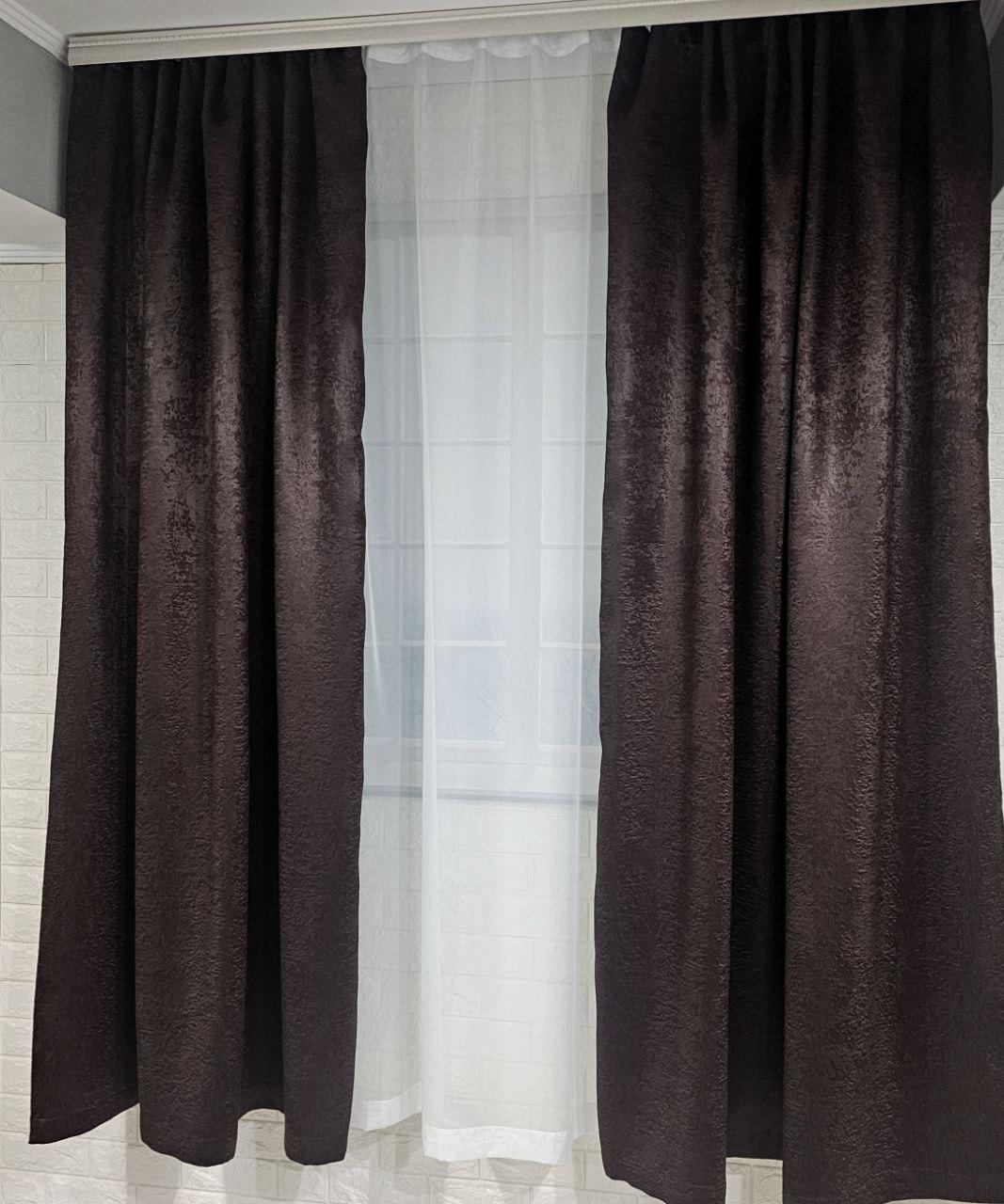 Комплект короткие шторы и тюль. Блэкаут софт + тюль шифон вуаль. Цвет: венге шторы, белый тюль