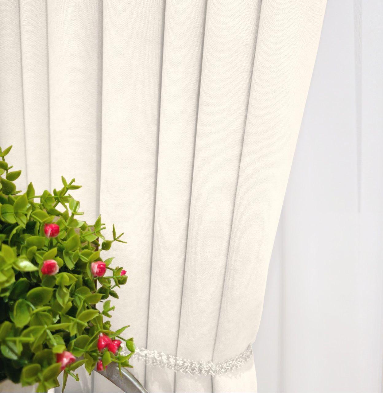 Комплект молочные шторы микровелюр Diamond. Готовые шторы молочного цвета в спальню, зал