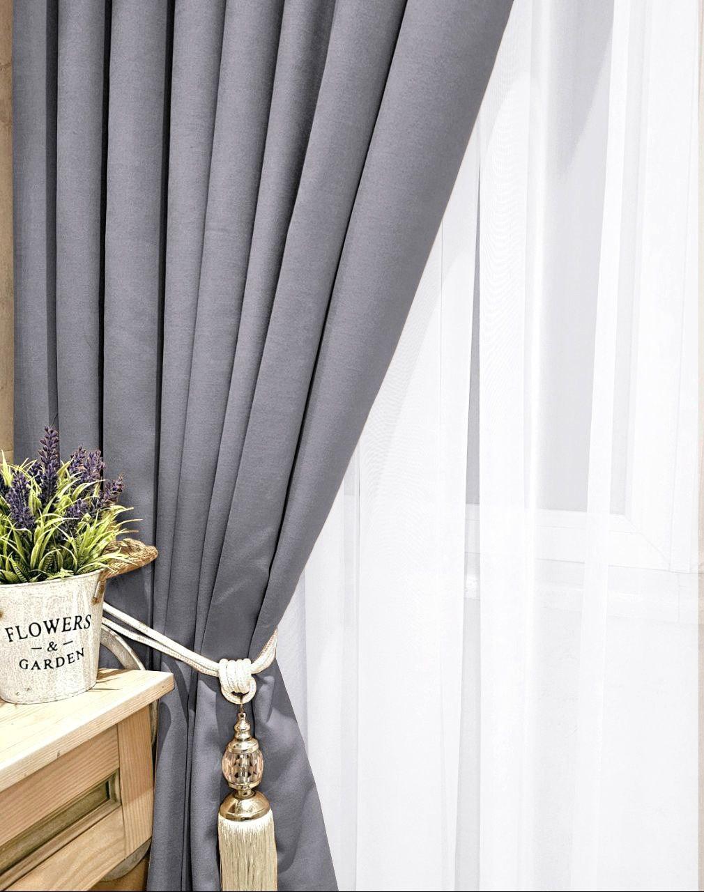 Комплект однотонные серые шторы микровелюр. Готовые шторы серого цвета в спальню, зал