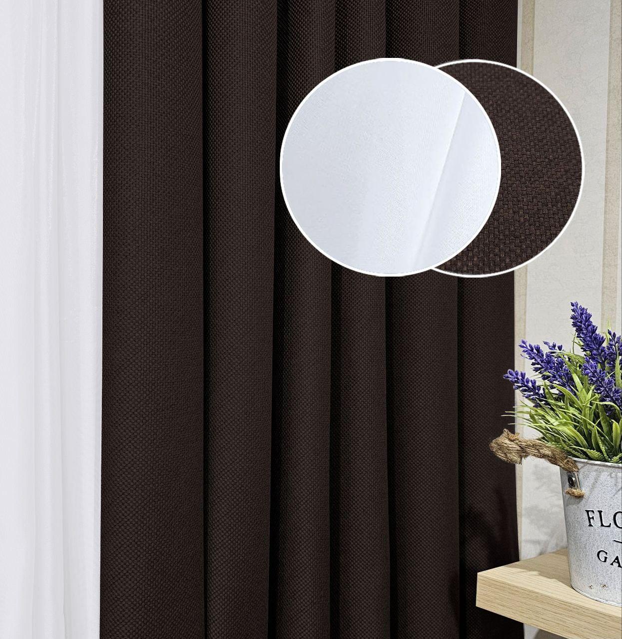 Комплект шторы и тюль. Ткань блэкаут лен рогожка + шифон. Цвет: венге (темный шоколад) шторы, белый тюль