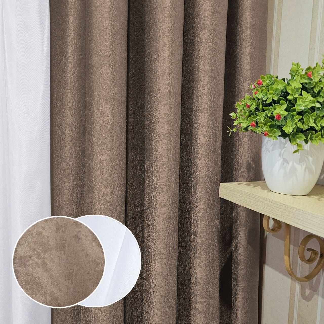 Комплект шторы и тюль. Ткань блэкаут софт + шифон. Цвет: какао шторы, белый тюль