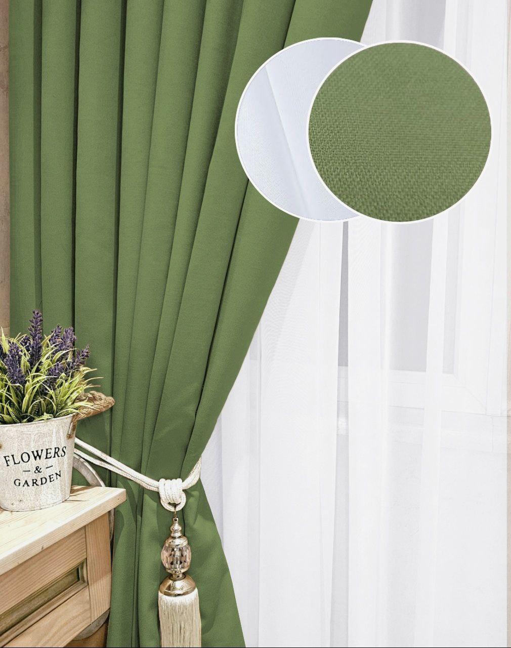 Цвет: зелёный (шторы), белый (тюль)