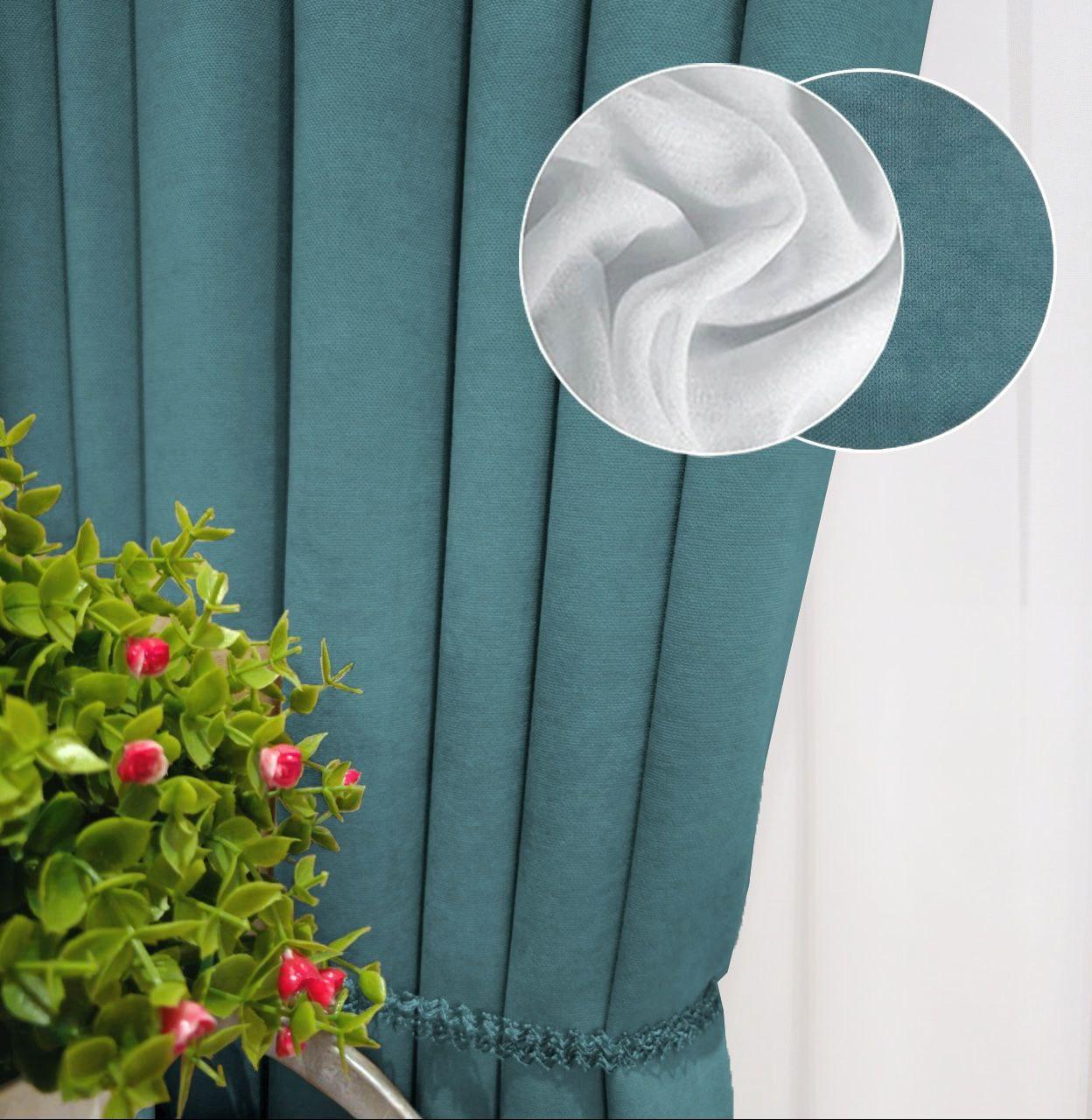 Комплект шторы и тюль. Ткань микровелюр Diamond + шифон вуаль. Цвет: зеленая бирюза шторы, белый тюль