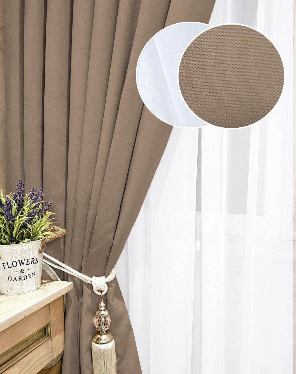 Цвет: тёмный бежевый (шторы), белый (тюль)