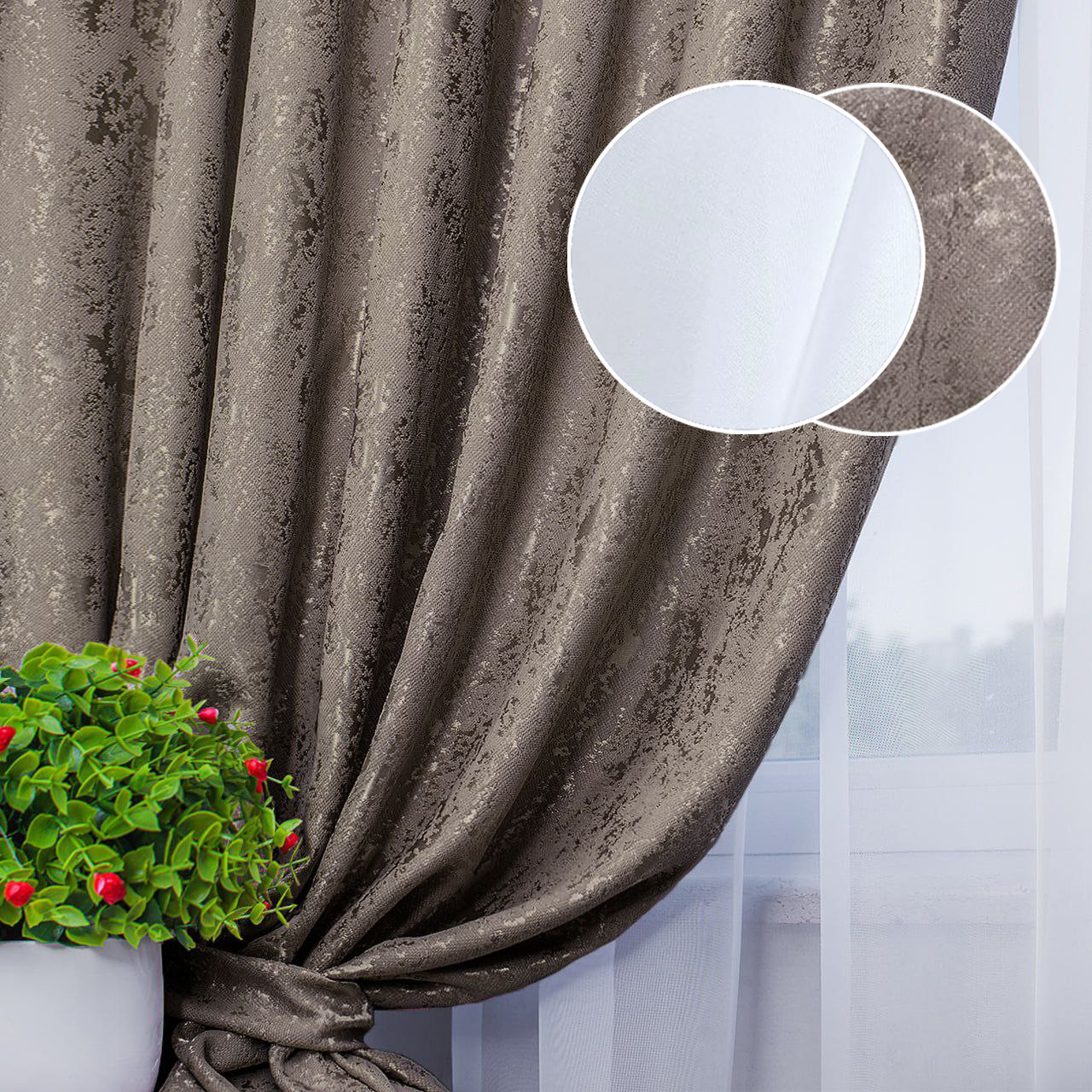 Цвет: серо-коричневый (шторы), белый (тюль)