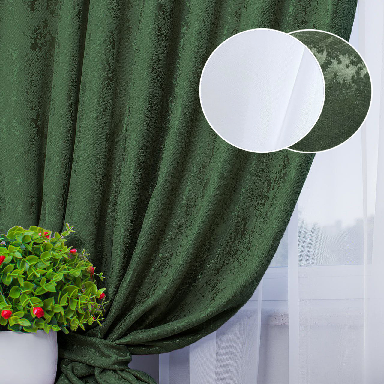 Цвет: зеленый (шторы), белый (тюль)