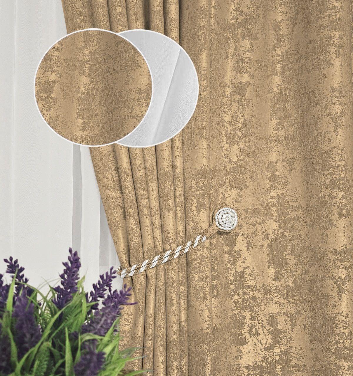 Цвет: золотисто-бежевый (шторы), белый (тюль)