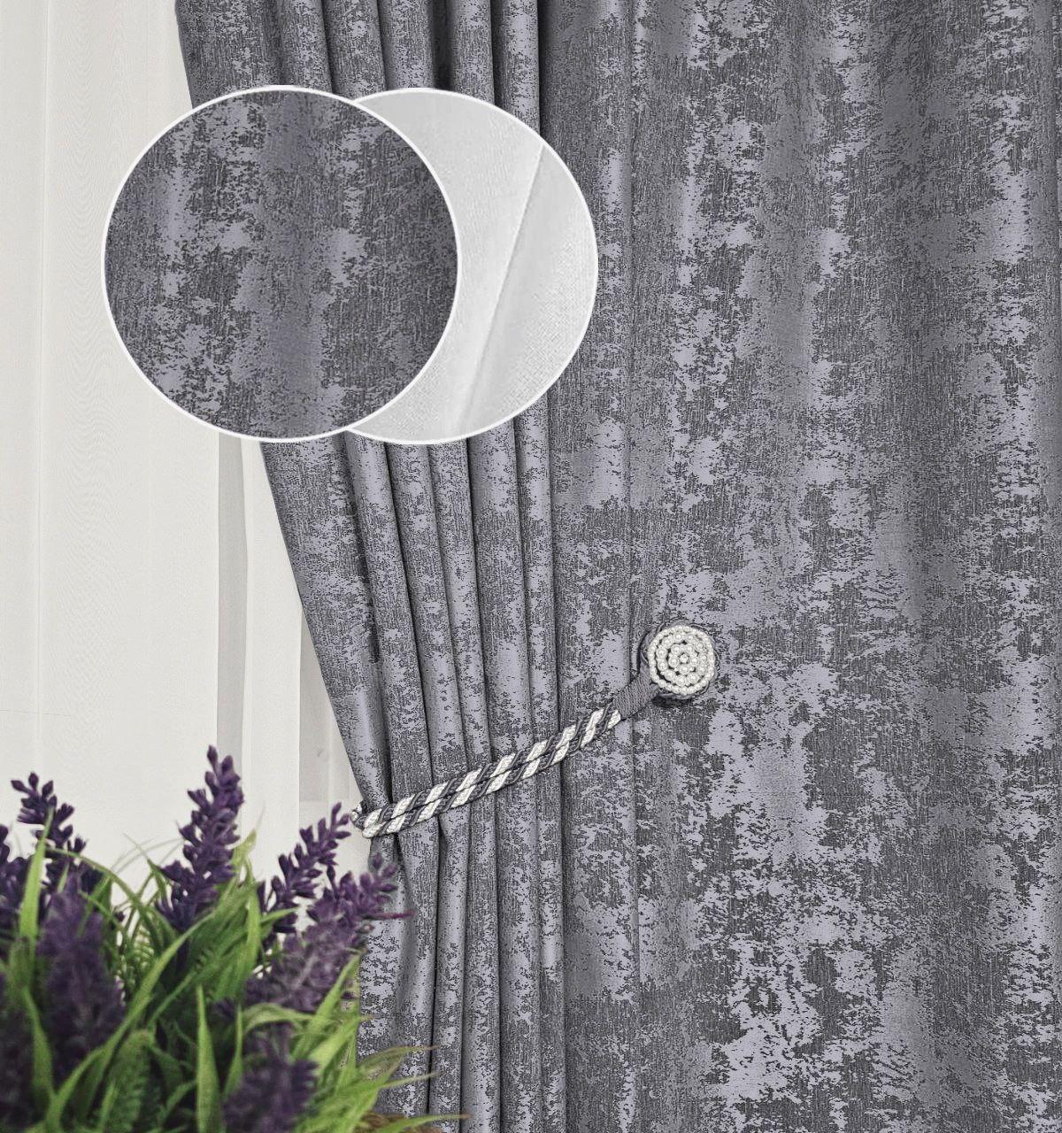 Комплект шторы и тюль. Ткань жаккард мрамор + шифон. Цвет: серые шторы, белый тюль