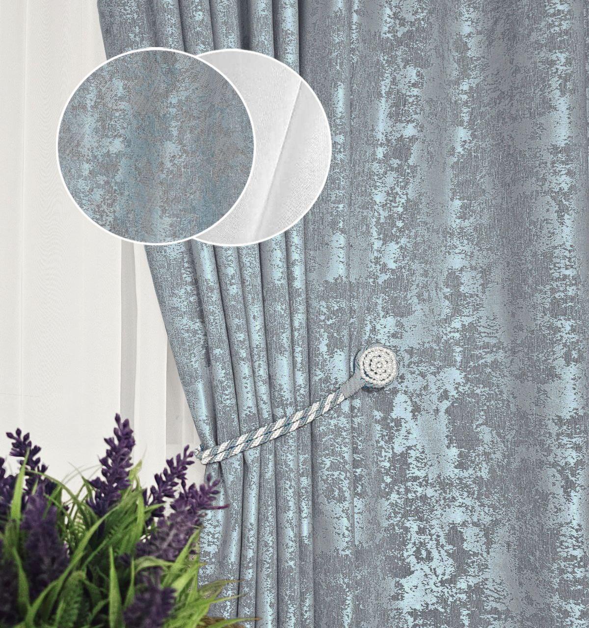 Комплект шторы и тюль. Ткань жаккард мрамор + шифон. Цвет: бирюзовый с серым шторы, белый тюль