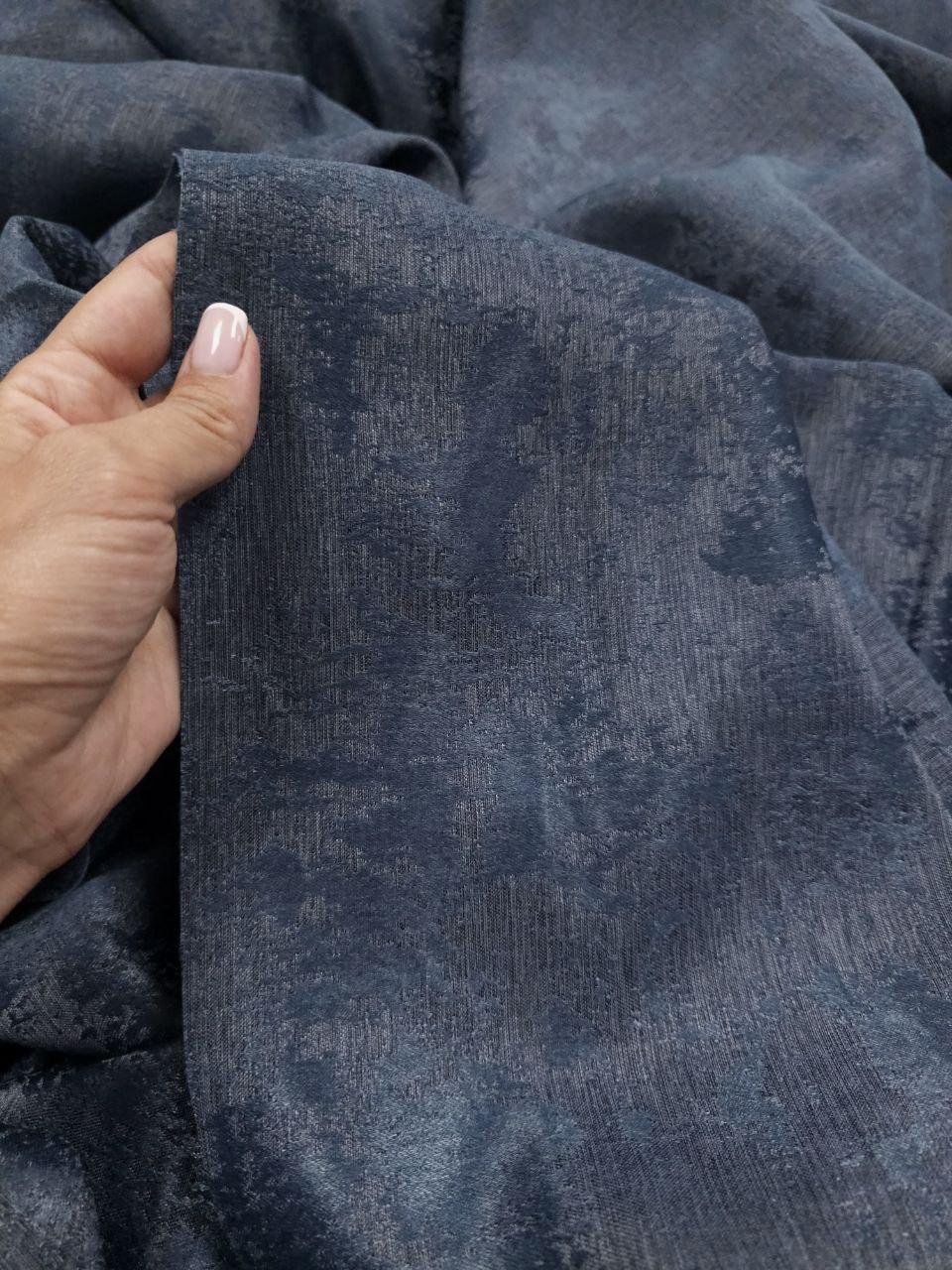 Комплект шторы жаккард мрамор. Цвет сапфировый. Готовые шторы в спальню, зал, гостиную
