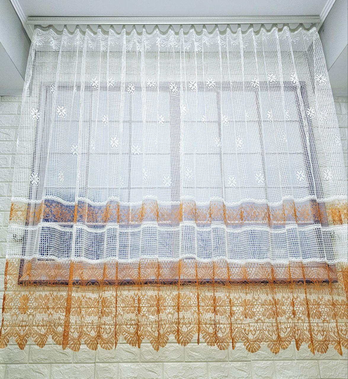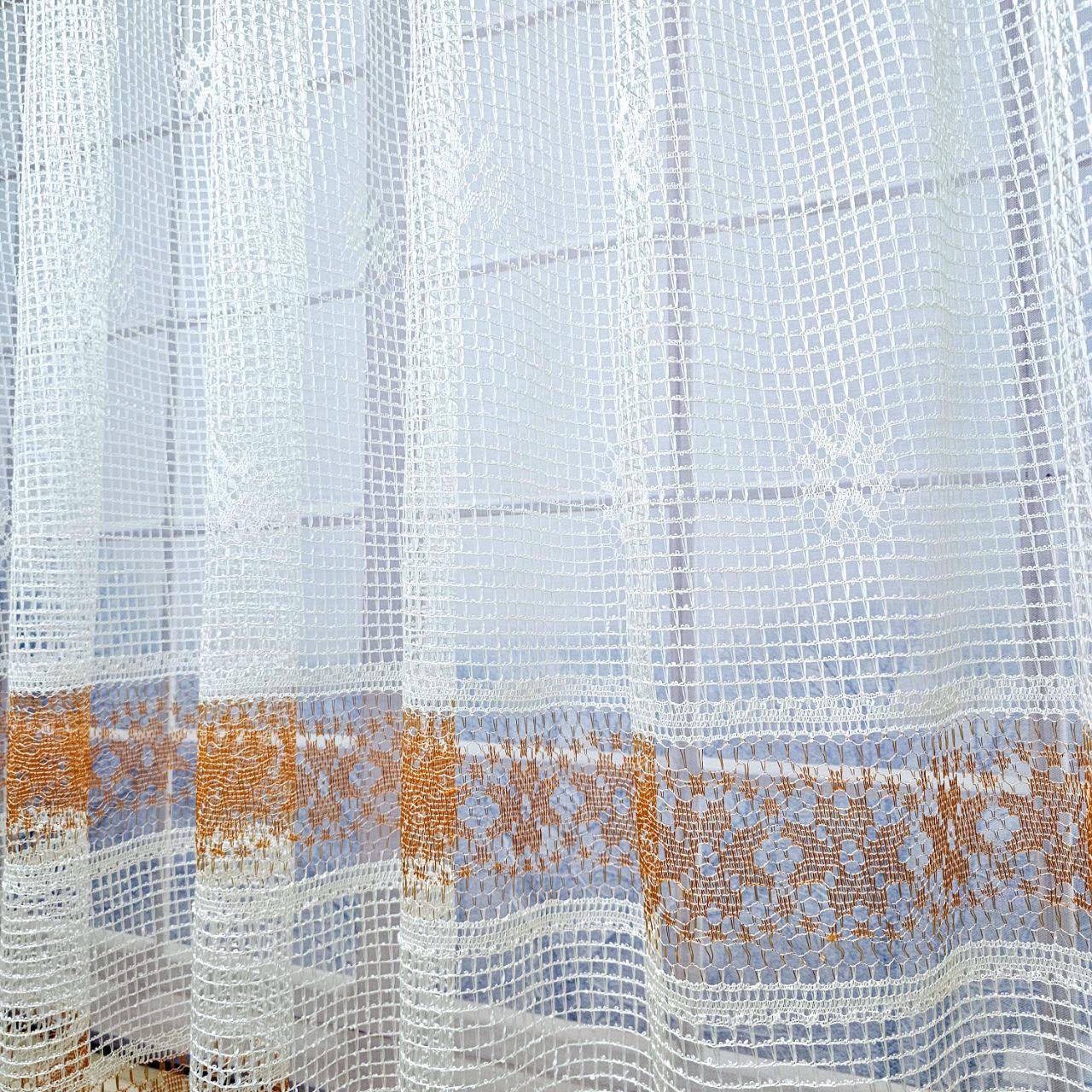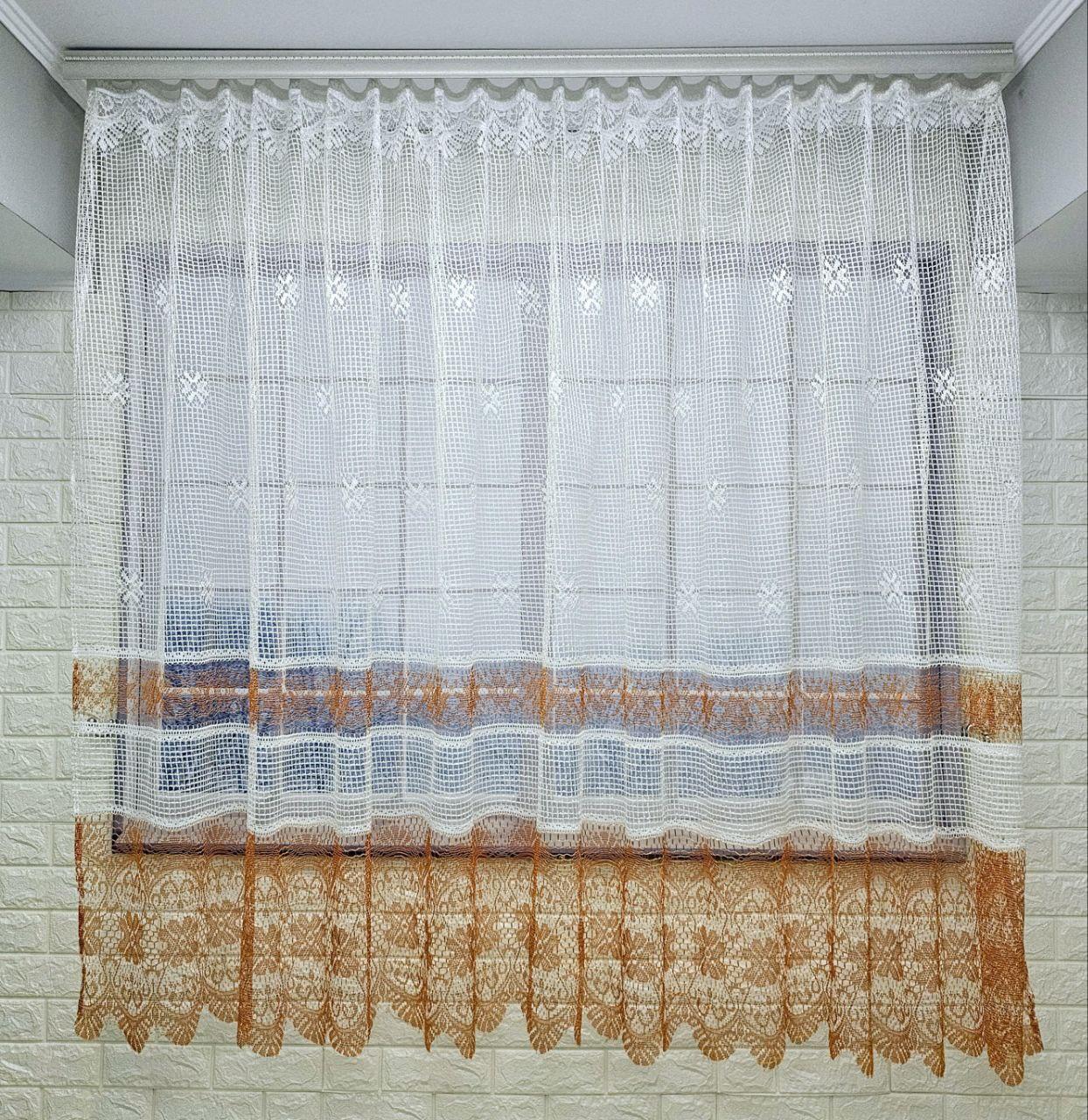 Короткий тюль. Цвет ванильный с коричневым. Тюль на кухню, балкон, веранду, дачу. Высота 1,6м